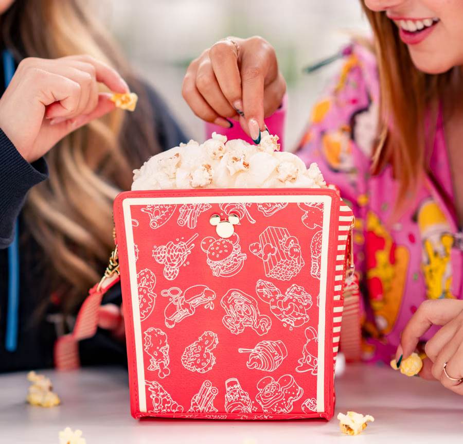 - You can also sport your favorite snacks (while you nosh on said snacks) in one of the vibrant Disney Parks Food woven button downs, casual T-Shirts or Spirit Jerseys that come in both Disneyland and Walt Disney World styles. Then complete your delectable look with the Disney Eats Popcorn Box Crossbody Bag.