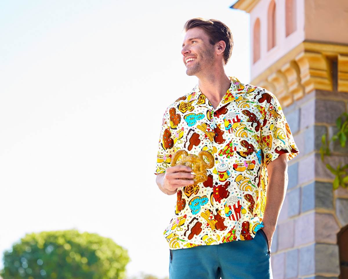 - The collection brings home a host of delicious new treats with a dash of Disney magic in the form of home goods, accessories and apparel featuring favorite snacks like ice cream bars, churros and popcorn – like this woven button-up shirt decorated in a smorgasbord of Disney Parks delights.