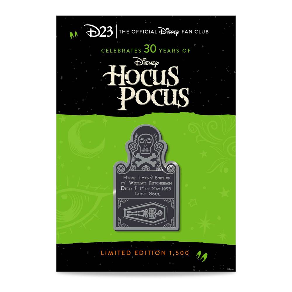- D23 Gold Members can take part in the sinister Sanderson deeds and wake the dead with this pin resembling the gravestone of one William Butcherson, also known as everyone’s favorite zombie: Billy.