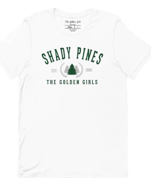 - Show off your love for The Golden Girls with the Shady Pines Adult Short Sleeve T-Shirt, featuring a nostalgic design that pays homage to the iconic retirement home.