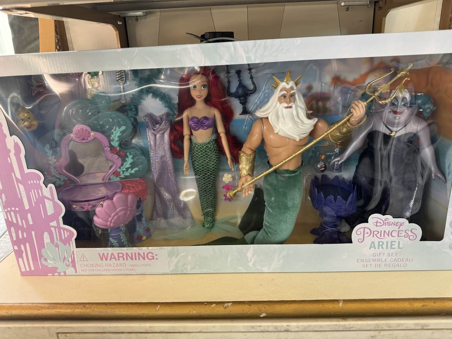 Ariel merchandise is still present, including a new set featuring an exclusive dress and a live-action Ariel doll now utilizing plastic-free packaging.