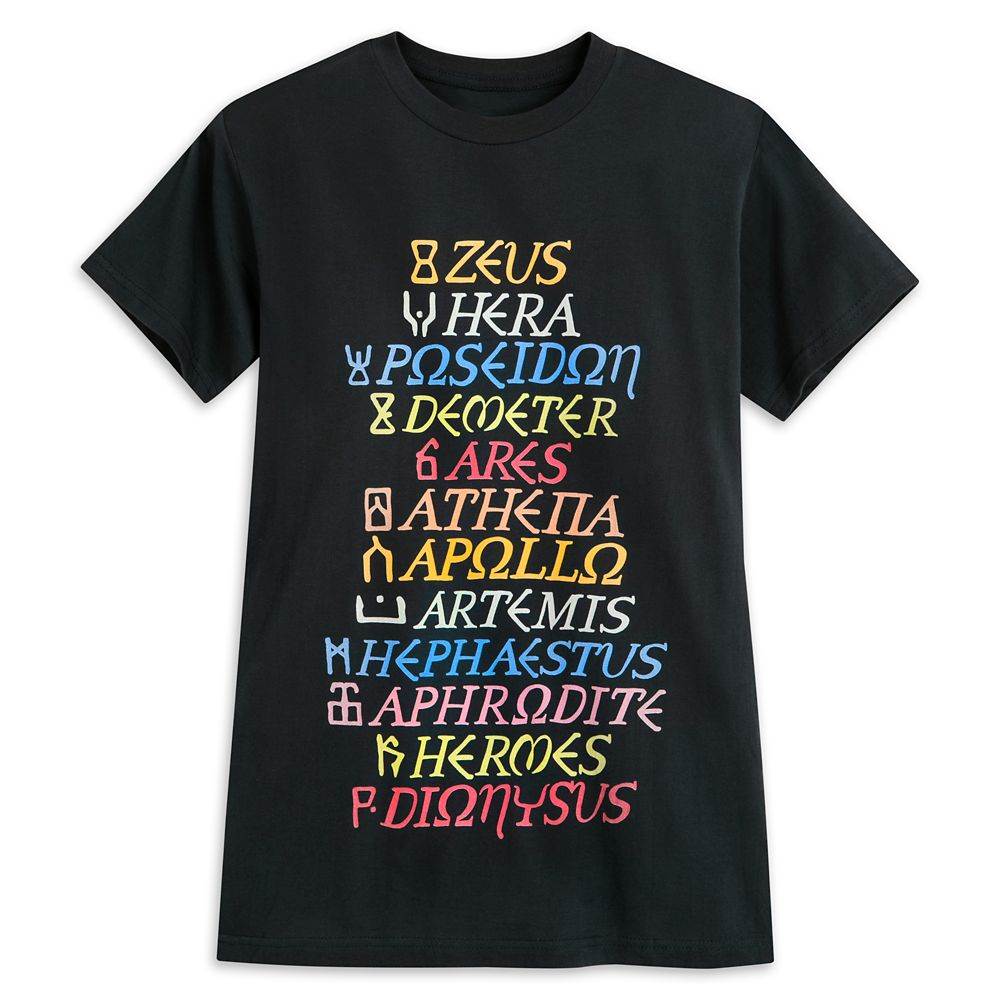 - shopDisney has released three new T-shirts (two in adult sizing, one in kids) that feature the “Camp Half-Blood" logo and other references to Percy Jackson and his Greek God relatives.