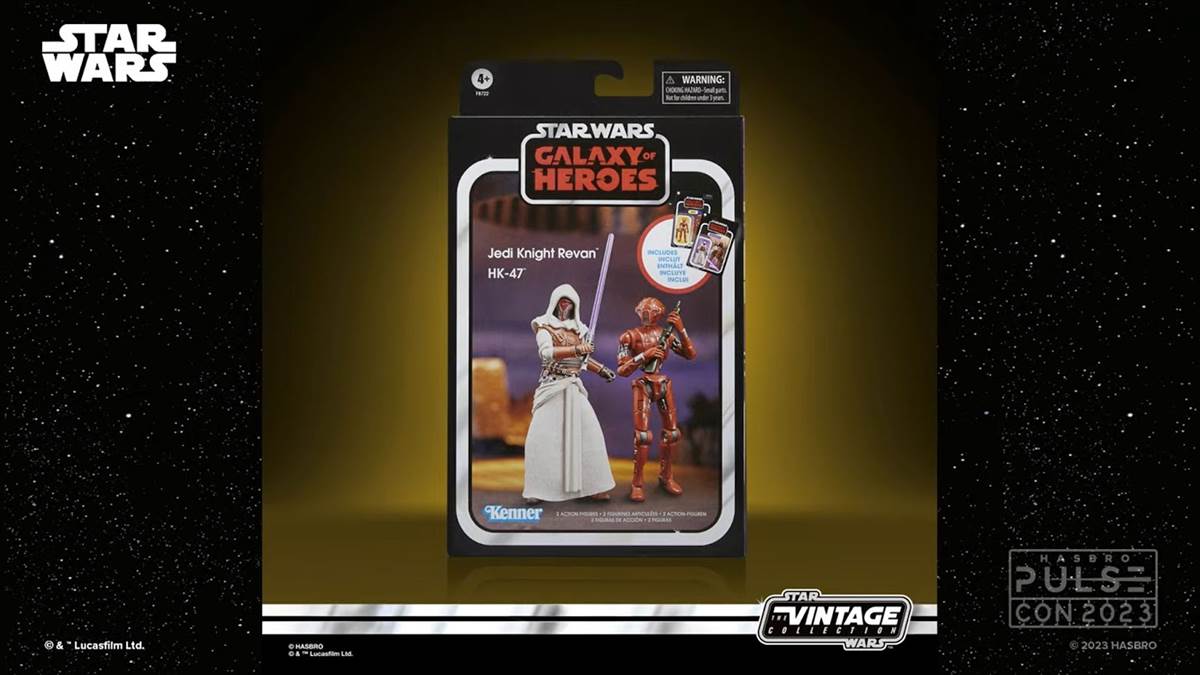 The first announcement during the Star Wars presentation was a two-pack of Jedi Knight Revan and the assassin droid HK-47 from the Star Wars: Galaxy of Heroes mobile game, coming to the 3 ¾-inch Vintage Collection.