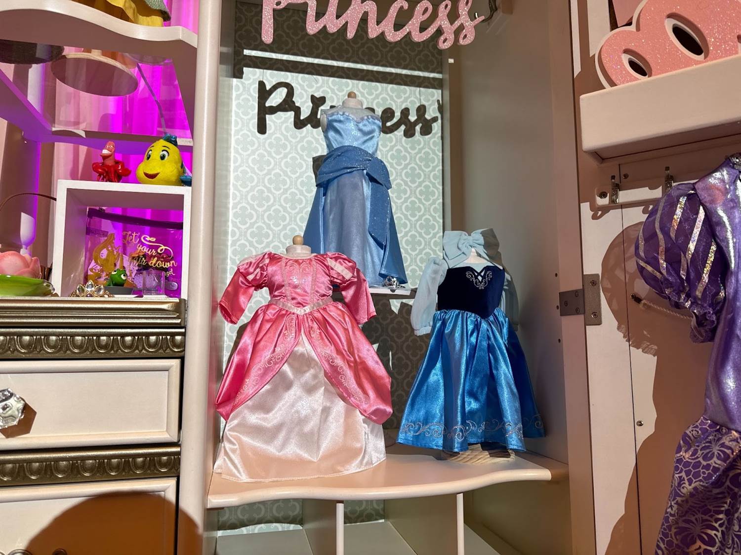 Perfect for dress-up play and trick-or-treating, Jakks Pacific offers a variety of Disney Princess dresses and accessories for kids. Dresses themed to Ariel and Tiana were one one side of a closet display that also featured…