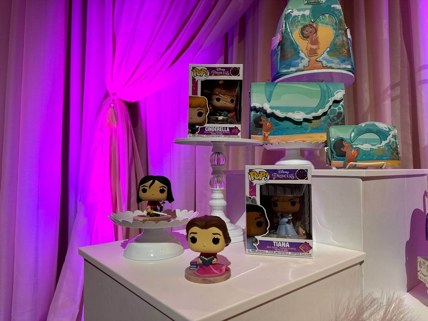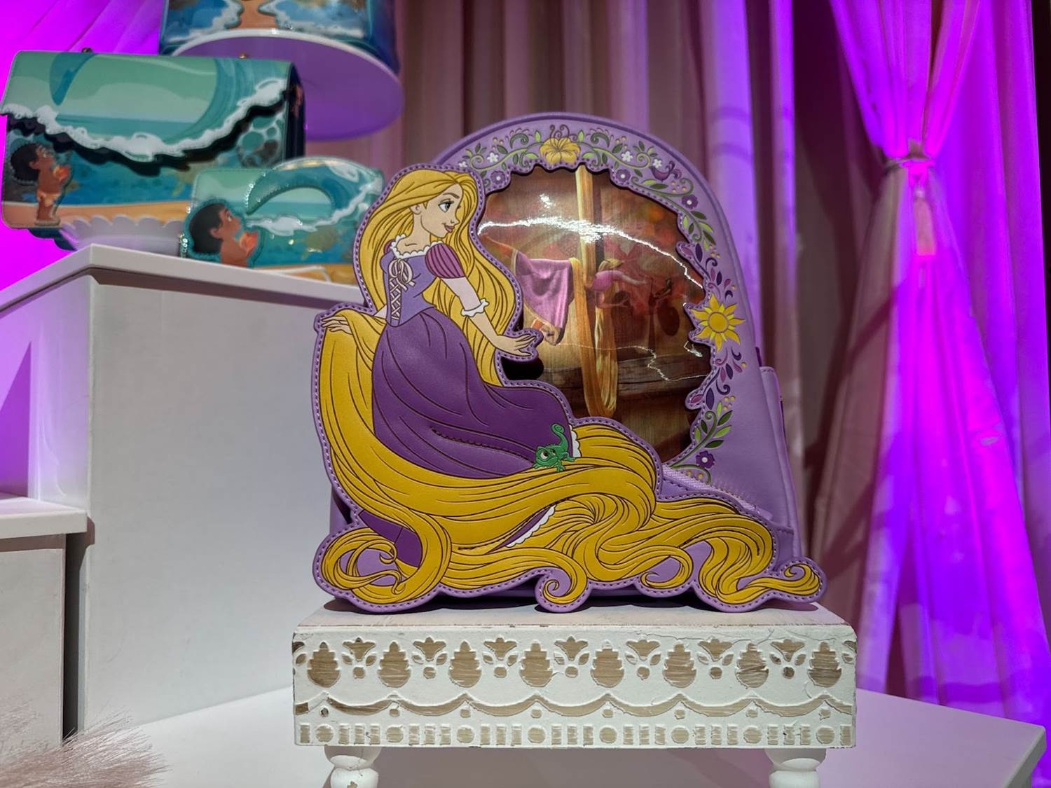 Loungefly mini backpacks are the perfect size for Disney Parks visits, and the brand has been incorporating Disney characters for a long time. Two new styles were on display themed to Rapunzel and Moana, plus a few Funko Pop! figures for home decor.