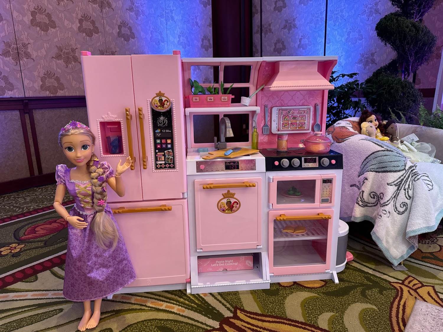 Disney Princess characters are from specific times and places throughout history. Kids who want to bring these characters into modern activities will love the Disney Princess Style Collection, roleplay toys that lend themselves to contemporary make believe scenarios, but still with a touch of Disney royalty. For example, the Fresh Prep Gourmet Kitchen features interactive elements including a dishwasher that makes sounds, a stove top that releases steam, and an interactive recipe card reader. Standing 3-and-a-half feet tall, it comes with over 35 accessories, including play food. Standing next to the kitchen for scale is the 32" tall Rapunzel Playdate Doll, also from Jakks Pacific.