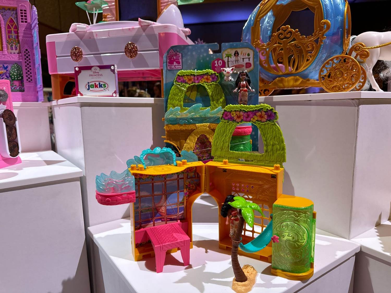 Also on display was the Moana Stackable Castle, which includes a Moana small doll, plus figures of Pua and Hei Hei. Additional stackable castle playsts currently available include Jasmine, Ariel, Elsa, and Anna.