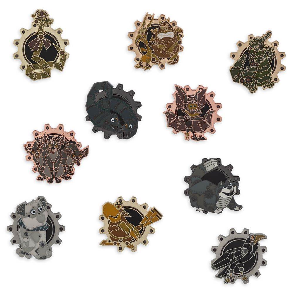 - Contains two randomly selected pins from 10 overall designs including: Lucifer, Tick-Tock, Raven, Sir Hiss, Fidget, Flotsam & Jetsam, Iago, Percy, Pain & Panic, and Shenzi & Banzai & Ed