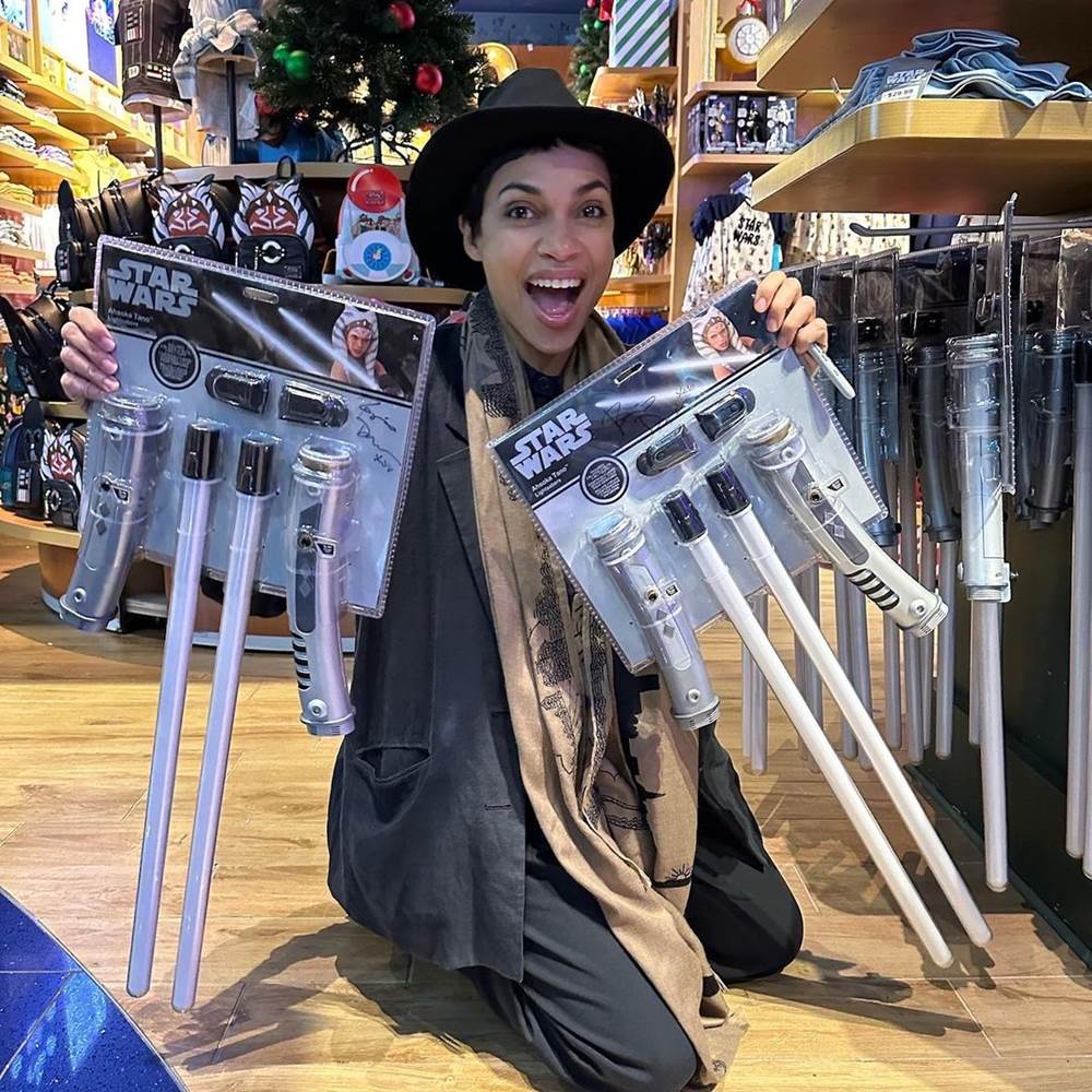 - The official shopDisney Instagram page shared some photos of Rosario Dawson, who starred in the Disney+ series Ahsoka as the titular heroine, taking a look through some of the fun Ahsoka merchandise available.