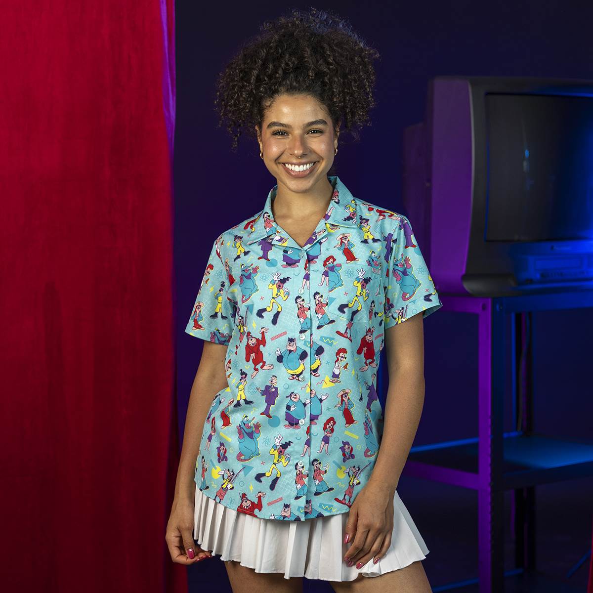 - If you want to celebrate the entire crew, “The Whole Goofin’ Gang" (classic and ladies) checks off that box. This aqua colored top is decorated with 90s graphics, doodles, and Max and Goofy’s favorite pals.