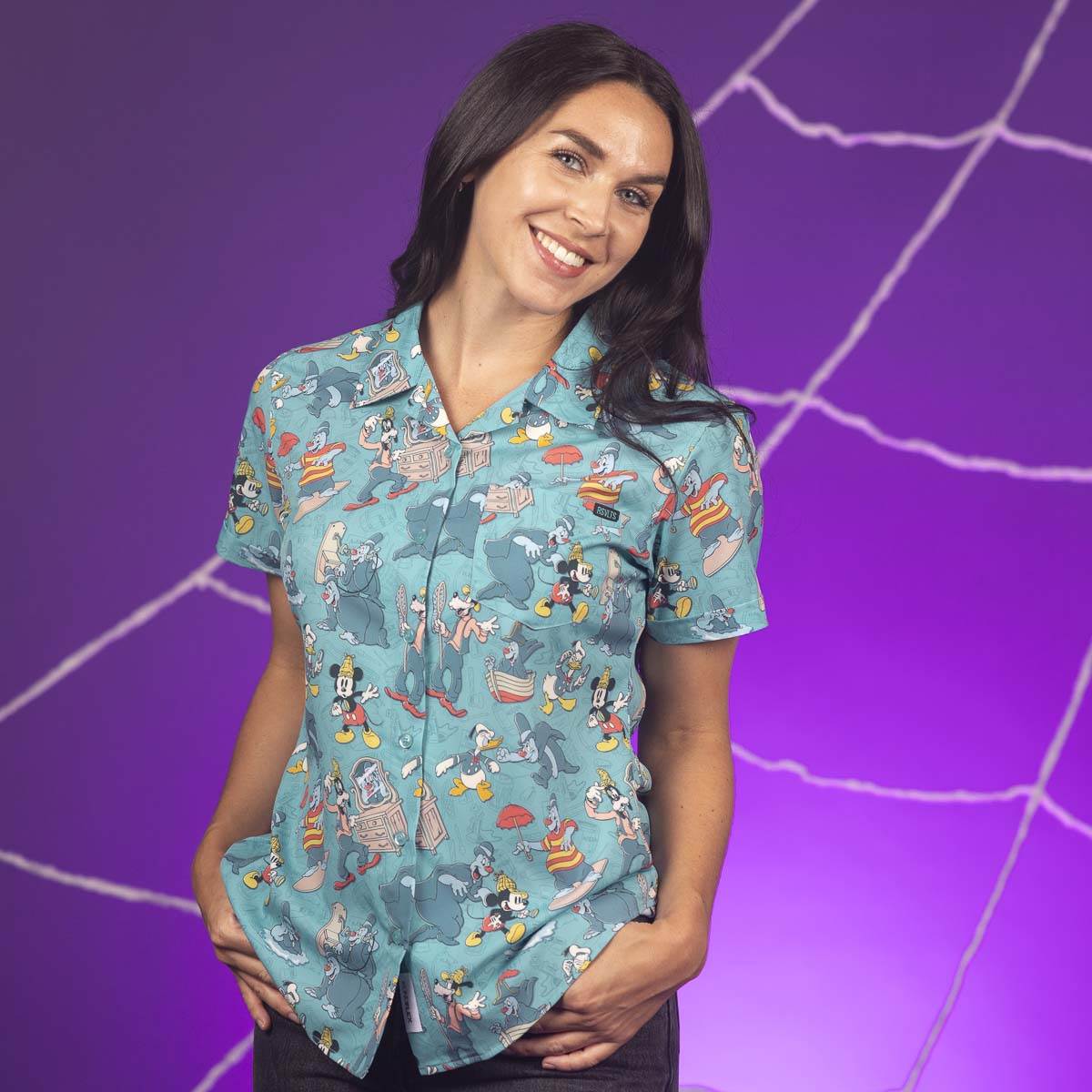 As always, the comfy four-way stretch material features colorful patterns consisting of icons and characters—like the mischievous ghosts that taunt Mickey, Donald, and Goofy— along with objects, and destinations that transport you right into the story. For this assortment, RSVLTS is offering their signature button downs, crewneck tees, and two baseball cap styles!