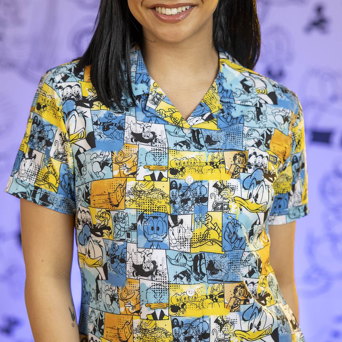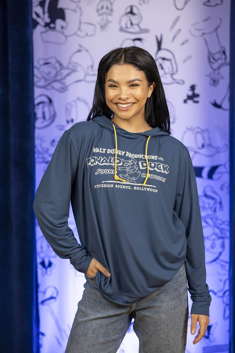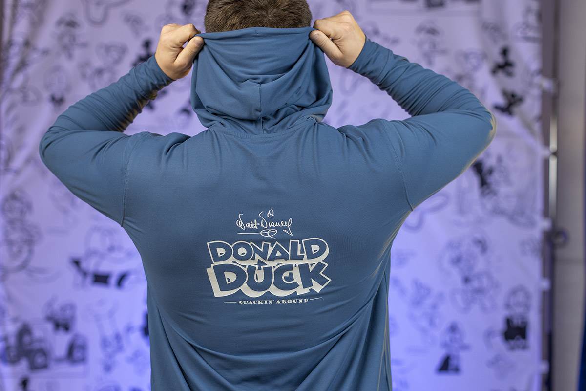 - Other popular styles that are part of this expansive drop include “Quackin’ Around," a comfy performance hoodie; “Designing Donald" (a reverse of the button down) and “Duffin’ Donald" All-Day polo shirts; and a fashionable “Donald Duck Hook" dad hat. We’re fond of the simplistic look of the hoodie as well as the colorful patterns of the polos. Meanwhile Donald is as exasperated as ever on the blue and white hat and we gotta say, sometimes golfing makes us mad too!