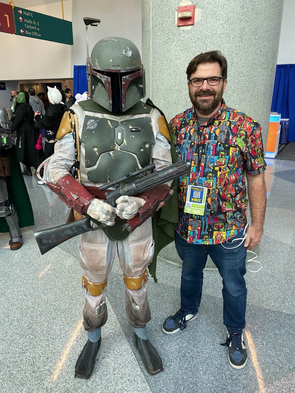 Like I mentioned earlier, the item of these three that I will more than likely get the most use of is the shirt (which I even met Boba Fett himself in, as you can see below), but I adore this pattern so much that anything is possible!