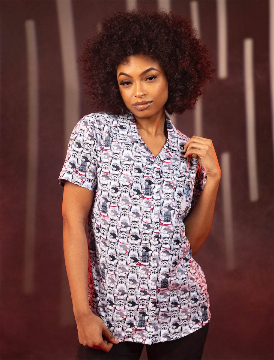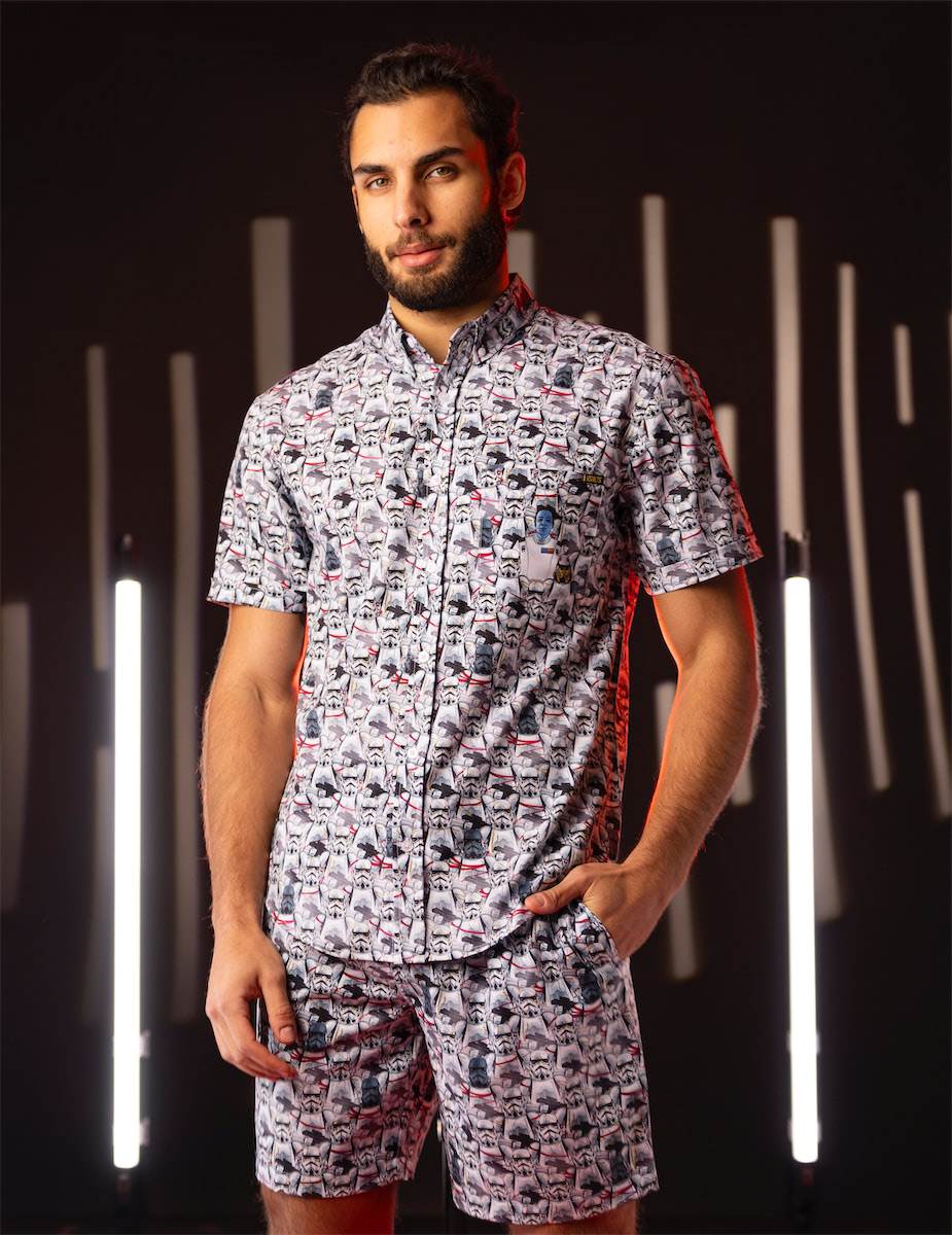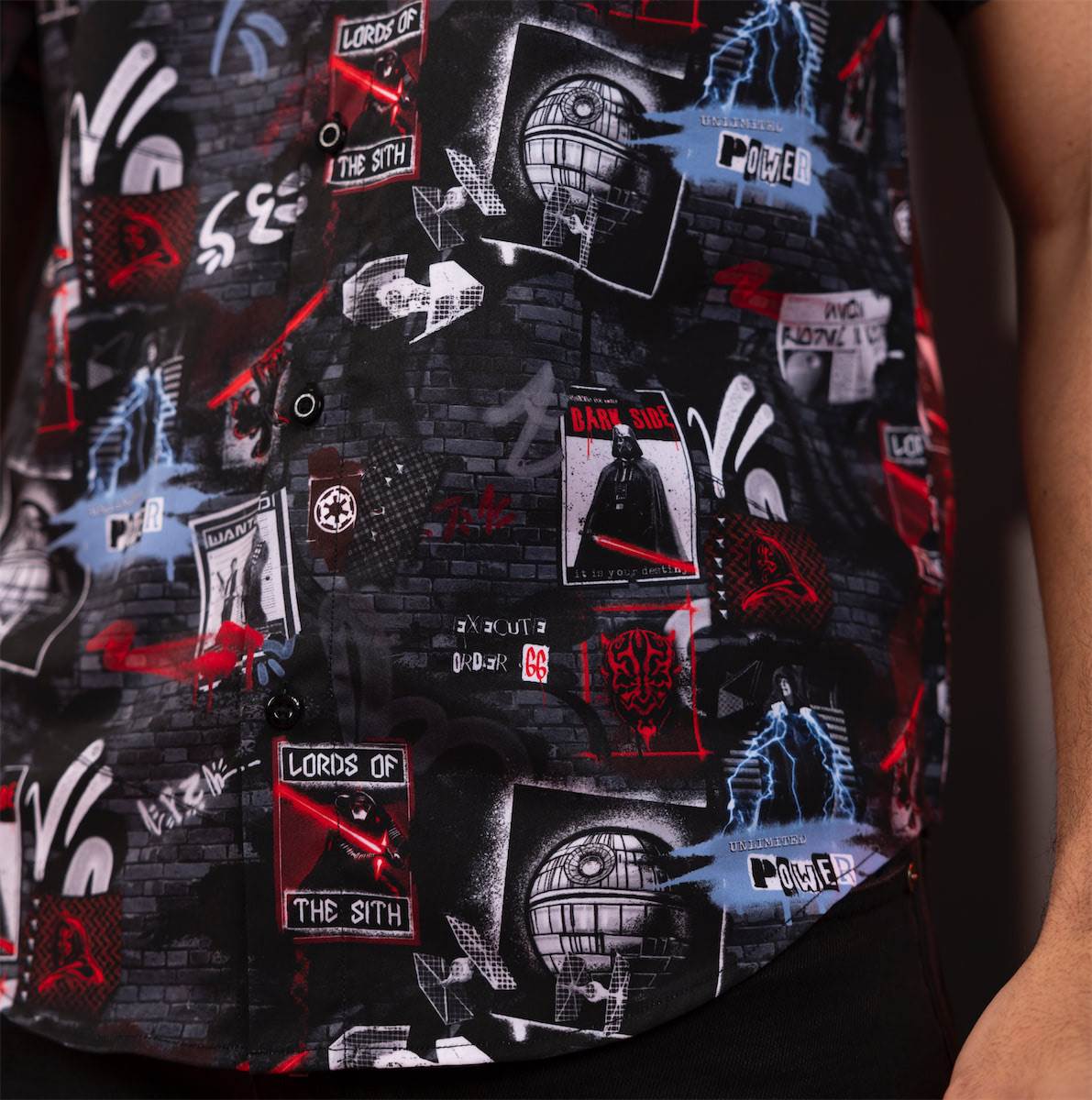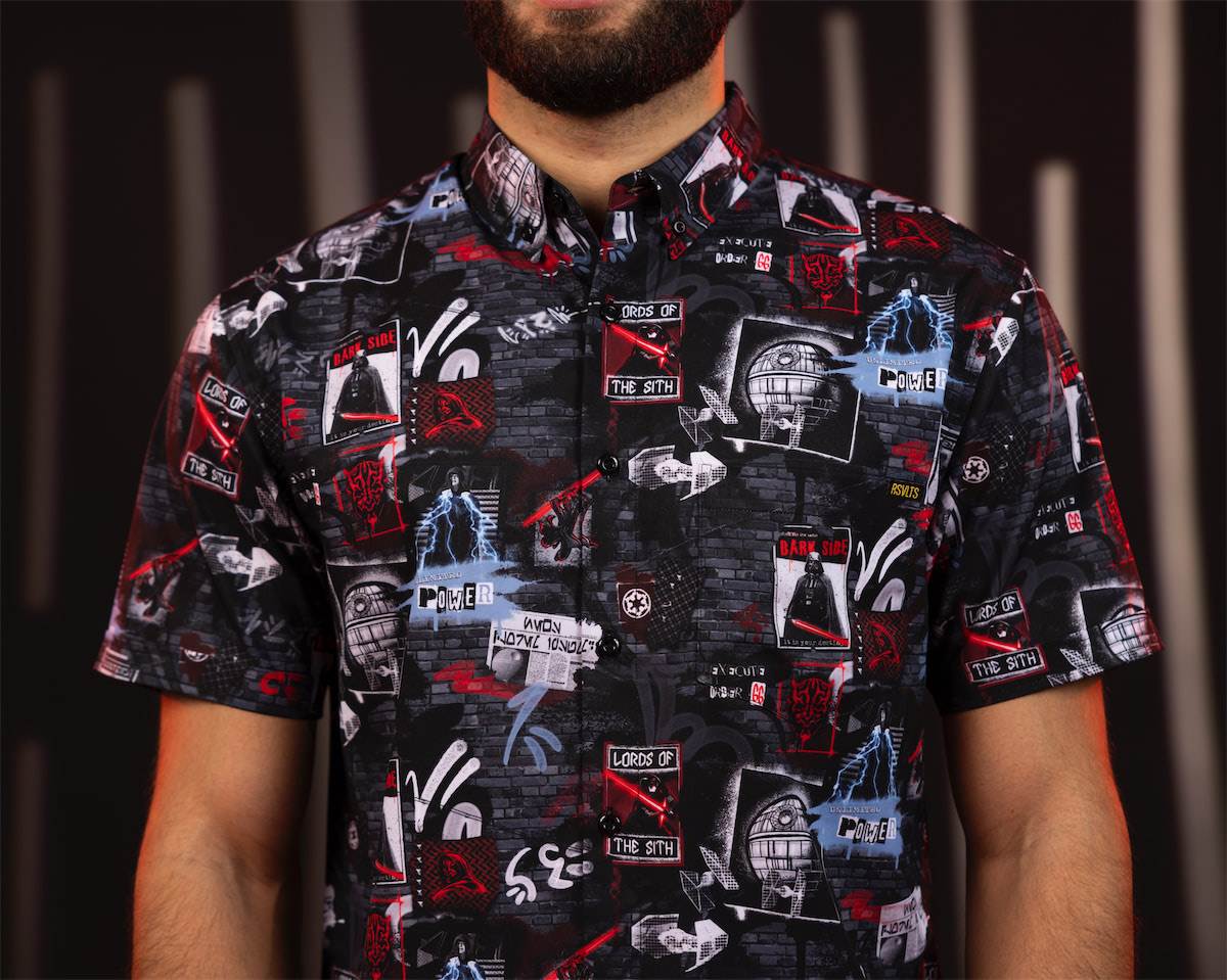 - If your mantras are “Lords of the Sith" or “Unlimited Power" then you’re going to love “The Empire Wuz Here." This button down shirt is all black, then decorated with red and blue street-art style images of Darth Vader, The Emperor, the Death Star and more.