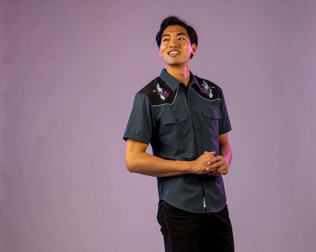 - Wrapping things up is “Dark and Gloomy," an incredible roper style button down spotlighting Hades and his minions Pain and Panic who hang out on both shoulders.