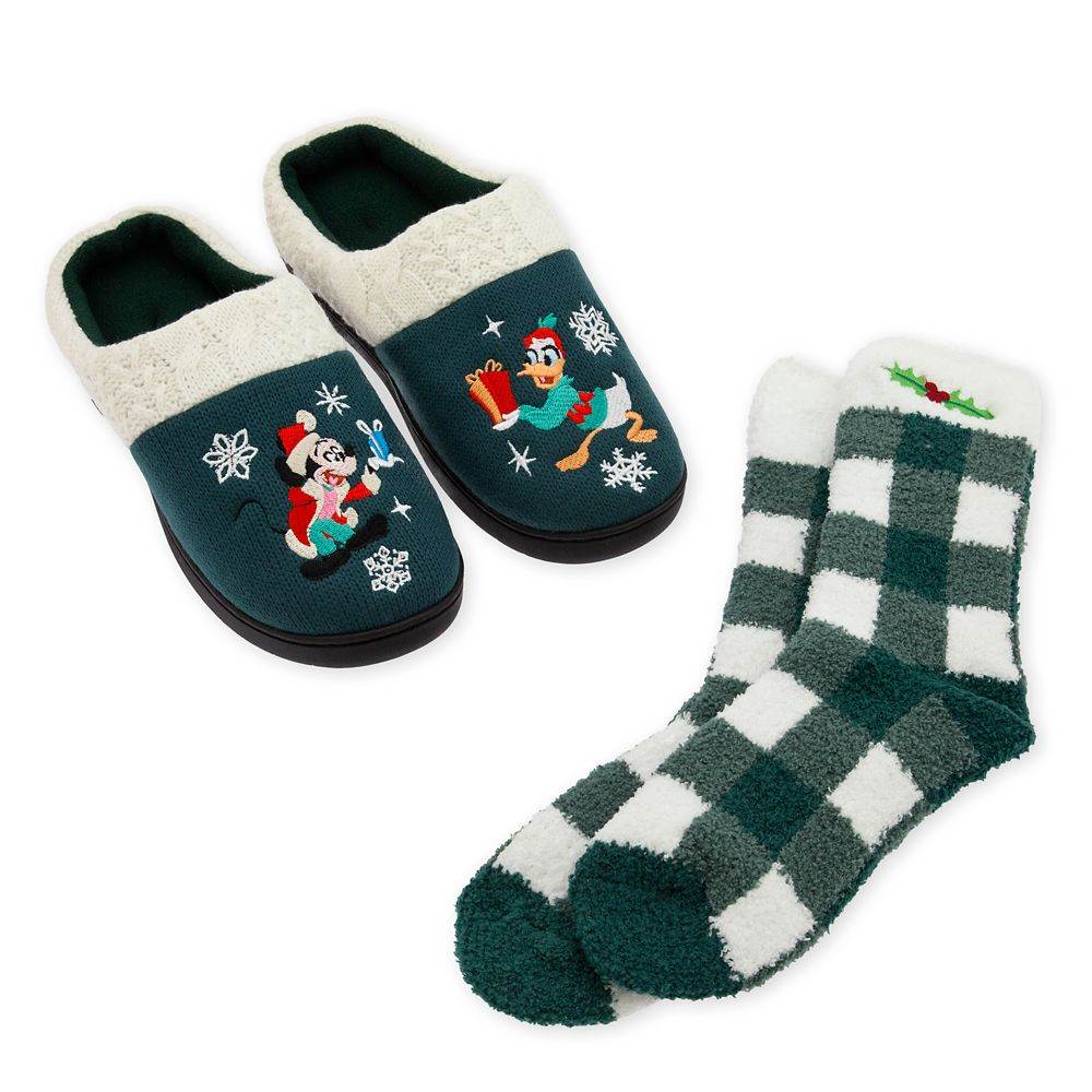 Mickey Mouse and Friends Holiday Family Matching Slippers and Socks Set for Adults
