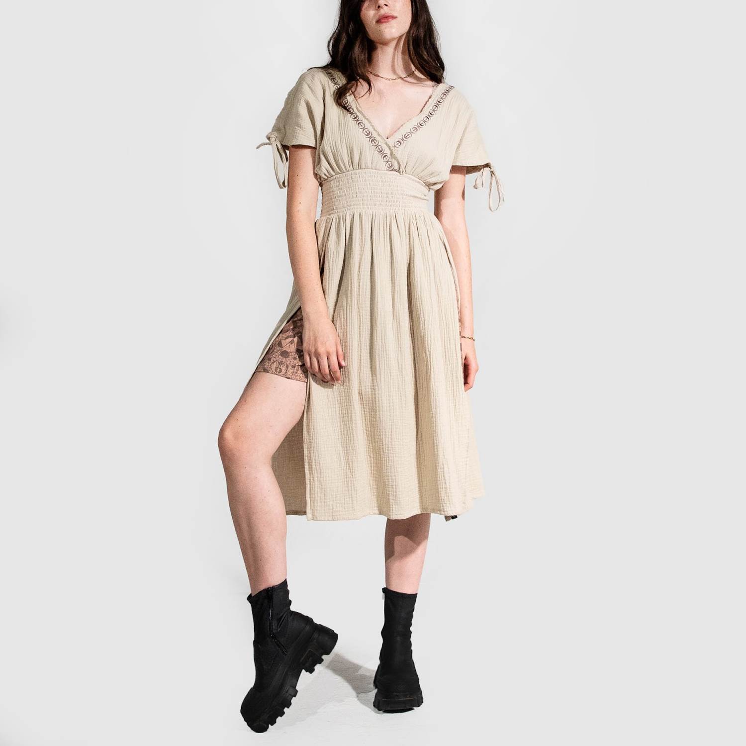 Rey Front Split Gauze Dress - $85