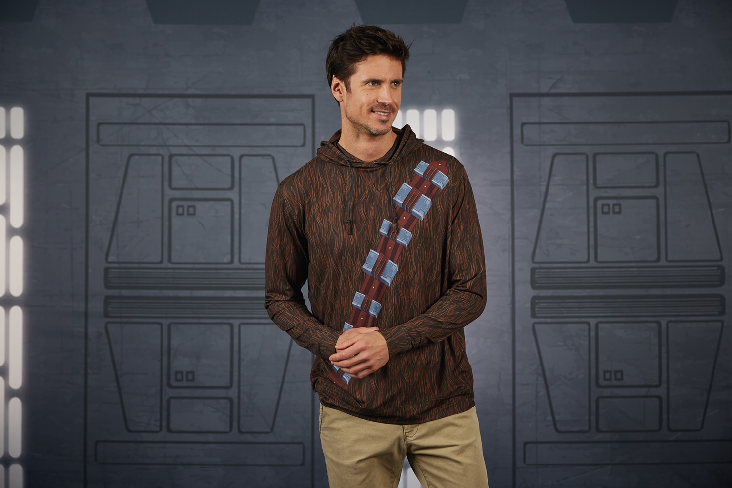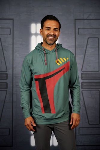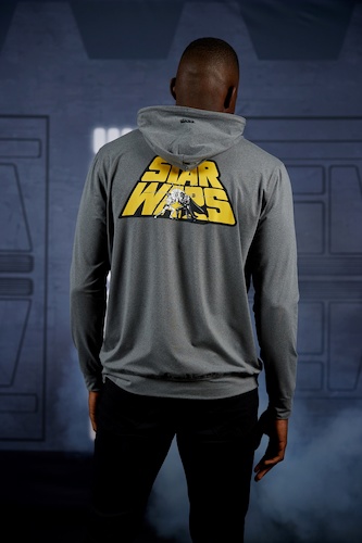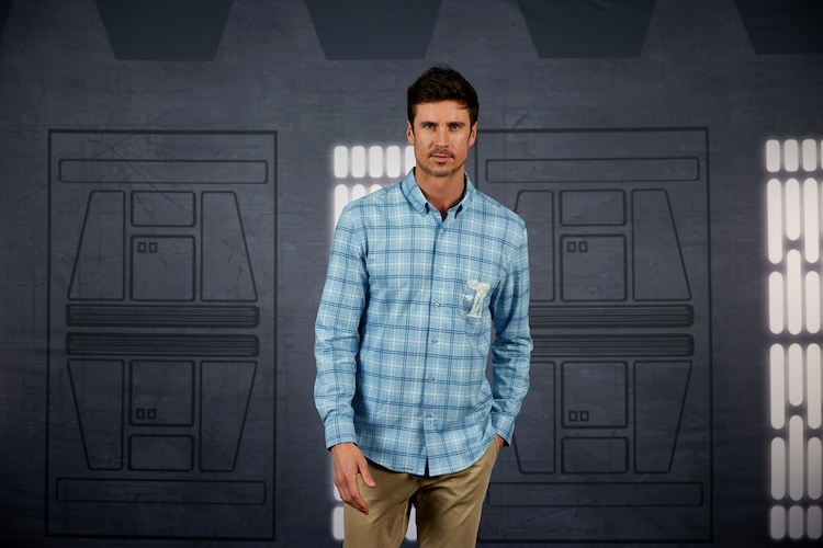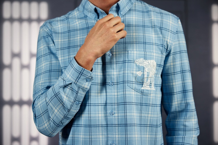 The ultra stretchy and super comfy Performance hoodies focus on Chewbacca’s furry body and signature bandolier, Boba’s iconic helmet, and the old school Star Wars logo featuring a symbolic dual between father and son. If you’re looking for a way to keep yourself “extra warm and cozy as you make the trek through the icy caverns of Hoth," you can’t go wrong with a charming light blue flannel button down complete with AT-AT Walker embroidered on the chest pocket.