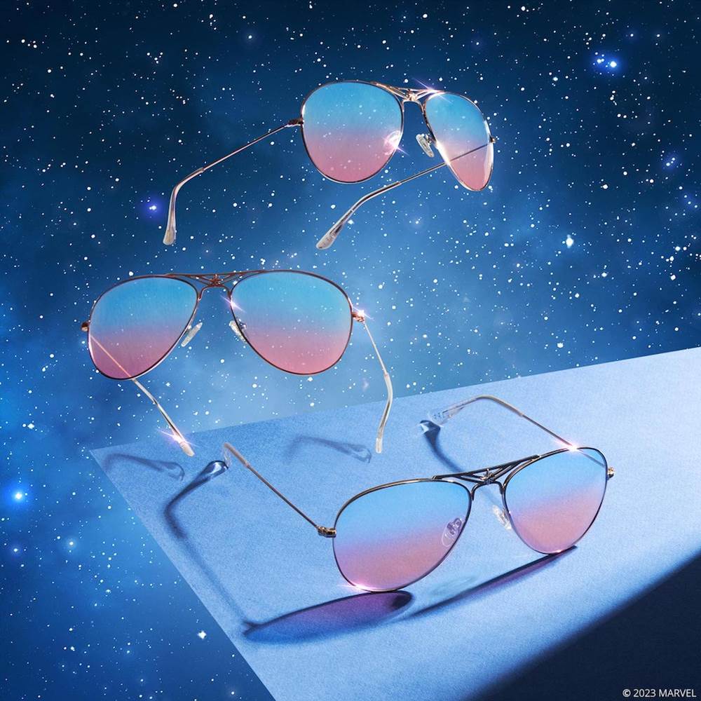 The world always looks better with shades on! DIFF Eyewear taps into the classics with their Captain Marvel design that combines retro-modern energy with sleek gold frames. Uniquely colored red-to-blue gradient lenses pay homage to Carol Danvers and the Captain Marvel emblem on the brow bar completes the look.
