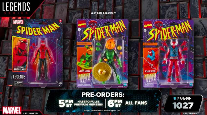 Hasbro Pulse hosted their live 1027 event today, sharing a look at some new toys from their various properties, including Marvel. The team revealed three new Spider-Man figures: Last Stand Spider-Man, Jack-O-Lantern and Scarlet Spider.