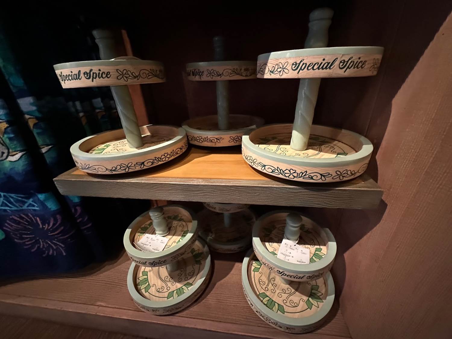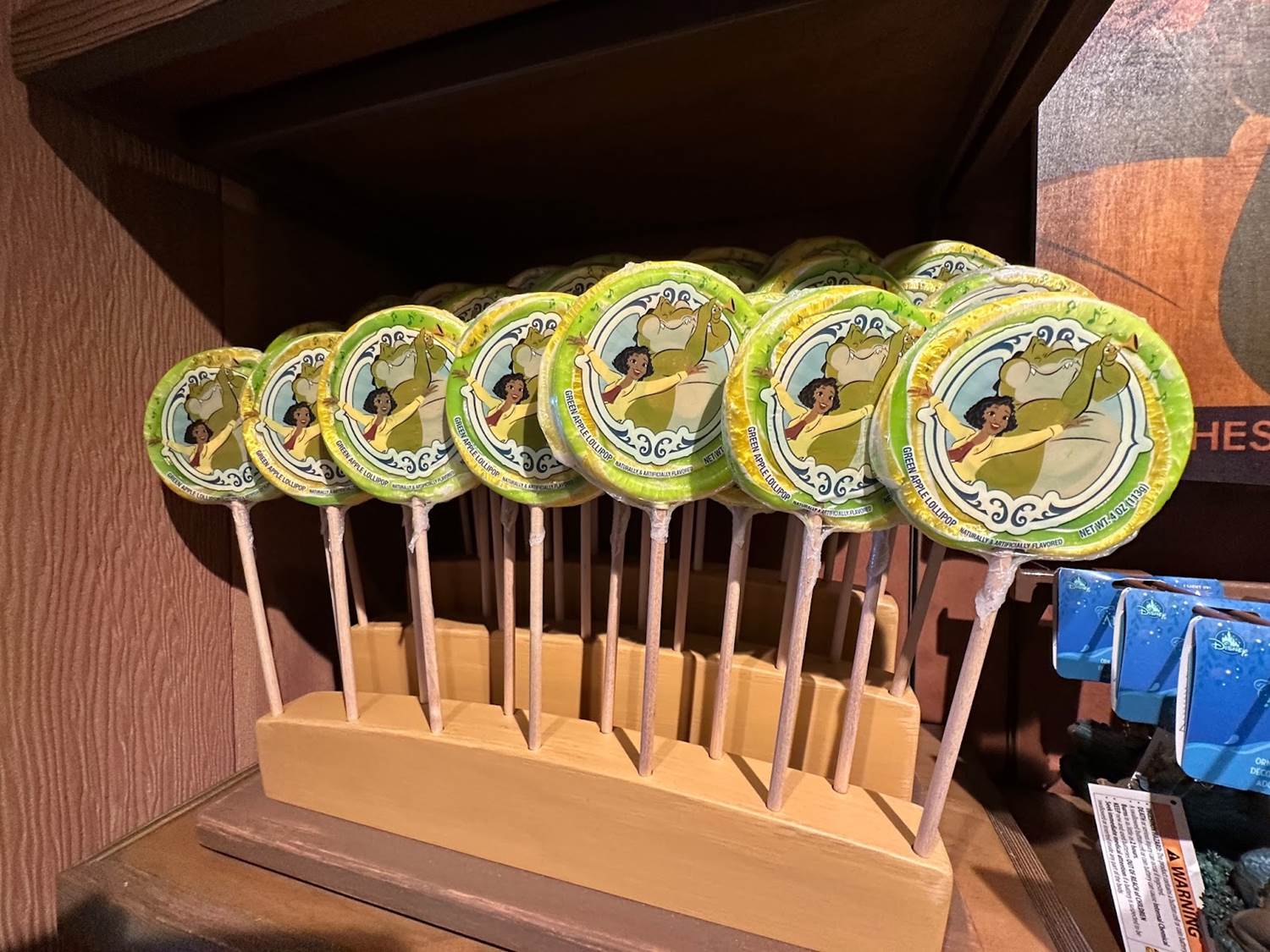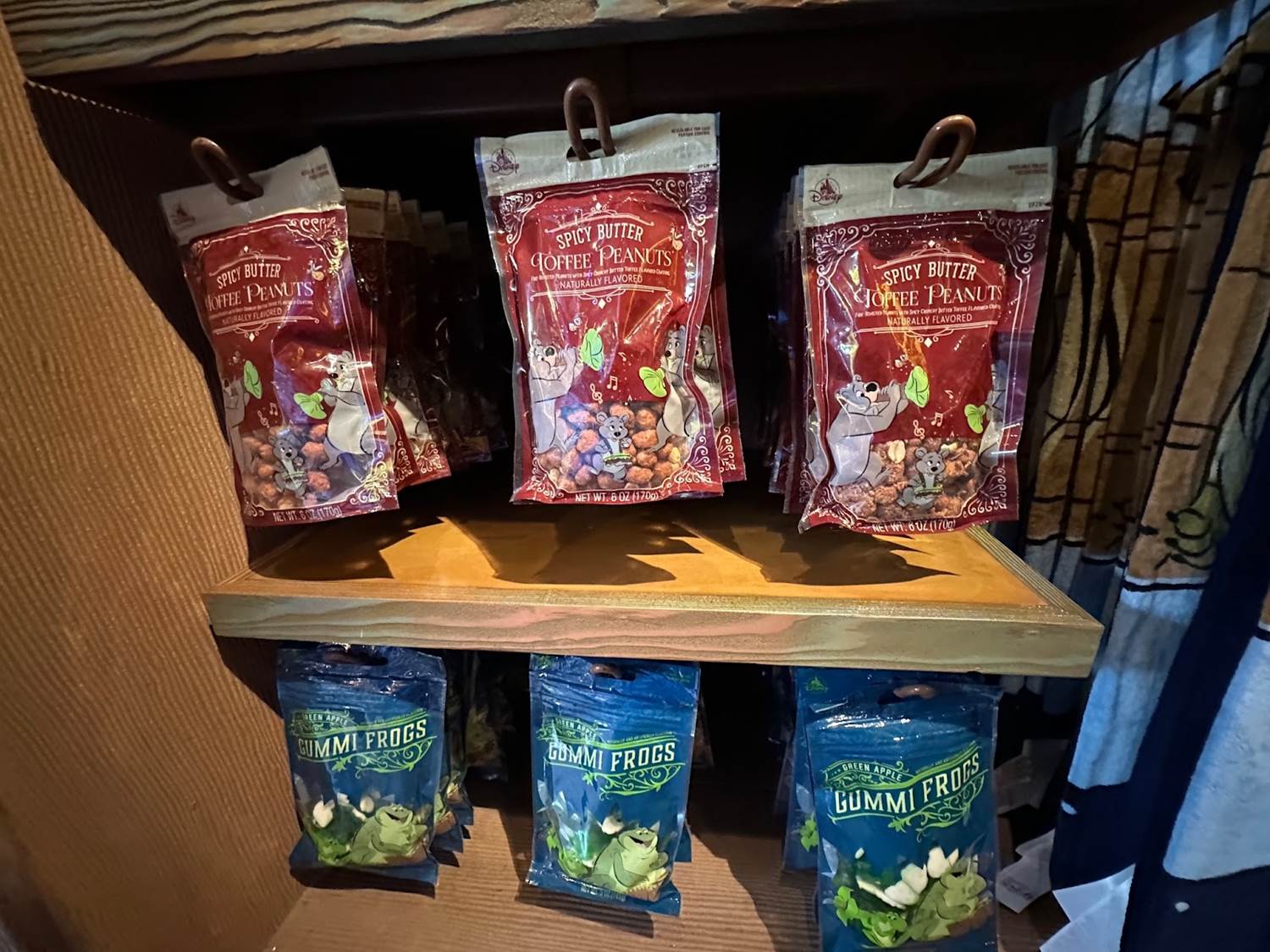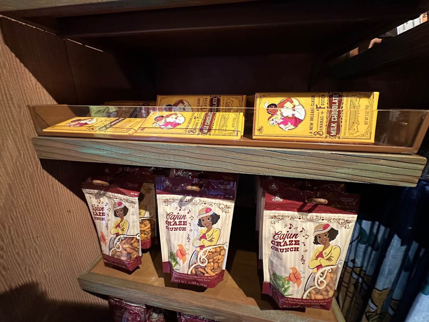 Fitting in with the Tiana’s Food theme of the attraction, Louis’ Critter Club is home to a large food and kitchen section. From new sweet treats to take home (such as the Bananas Foster chocolate bar), to housewares to Tiana-fy your kitchen, to a collection of items from Leah Chase’s restaurant, Dooky Chase. (Chase and the restaurant are the inspiration for Tiana. This is the first time that the restaurant’s spices have been made available outside the restaurant.)