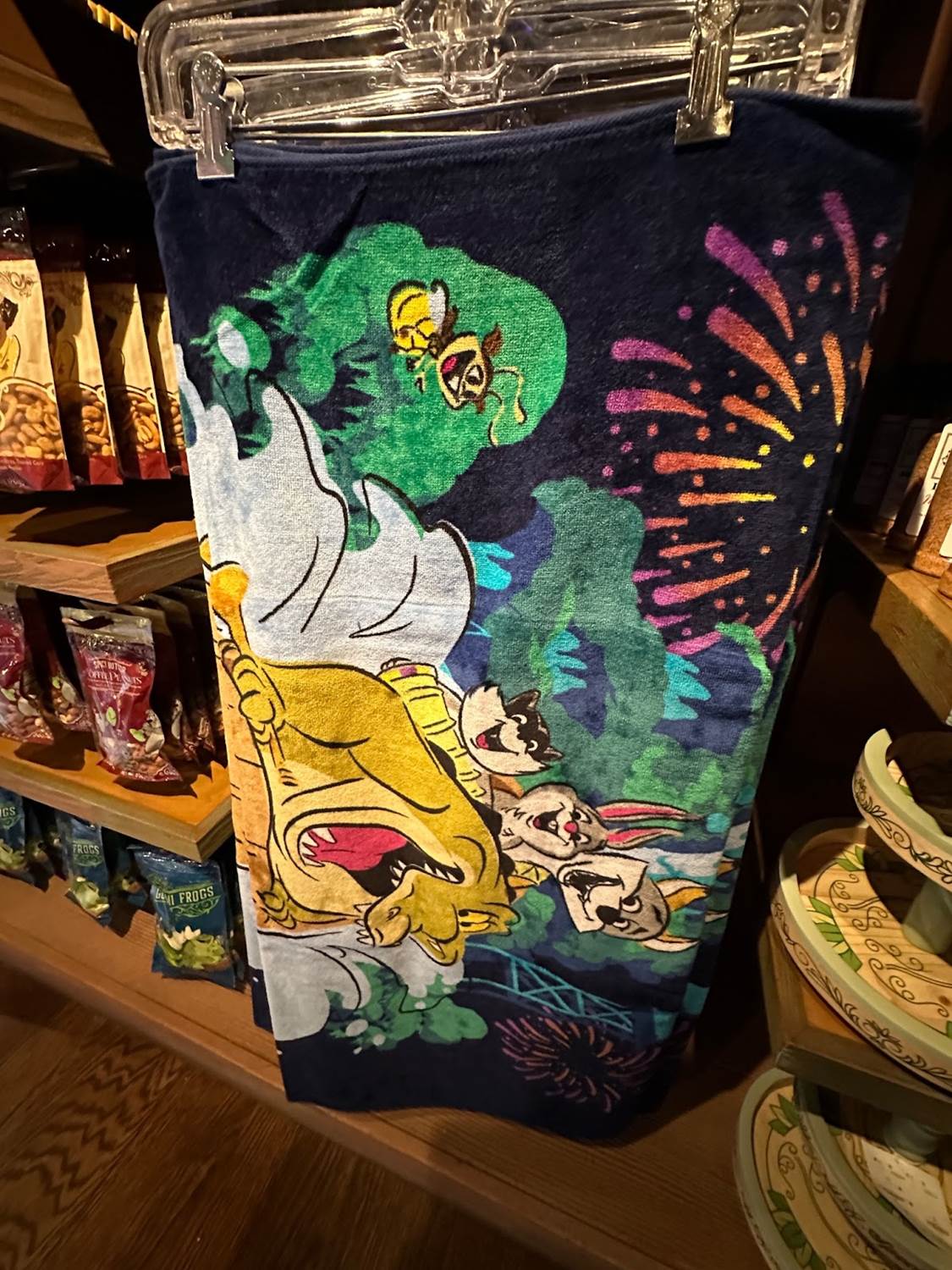 A variety of “normal haunts" fill the shop, such as a variety of apparel, pins, mouse ears, a Loungefly backpack, and towels (for after the splash down).