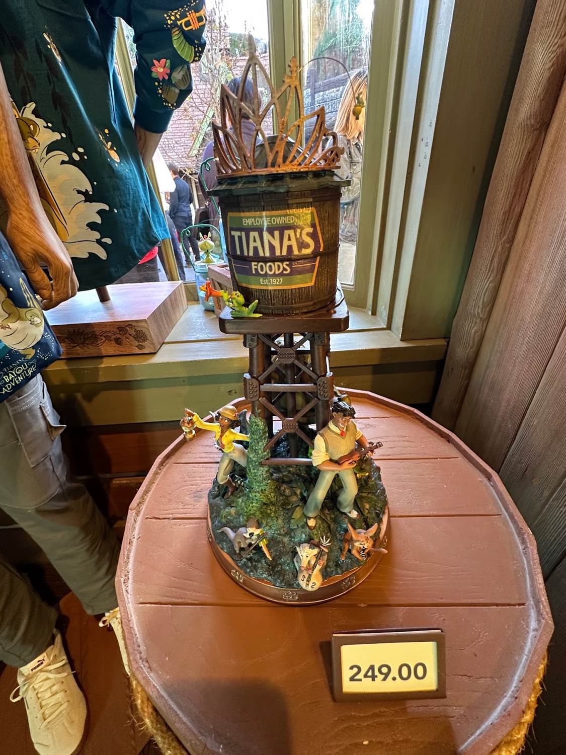 One of our favorite items is this wonderful reproduction of the Tiana’s Foods water tower, featuring Tiana and Naveen.