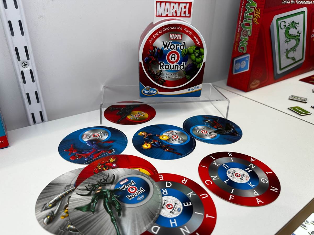 ThinkFun released Disney Word-A-Round earlier this year, which makes a great stocking stuffer. New in 2024 is Marvel Word-A-Round, which adds Marvel superheroes to the game. Each card contains words in rings, but it’s unclear where they start. Part of the fun of the Marvel overlay is that the rings on the back of the cards look like Captain America’s shield.