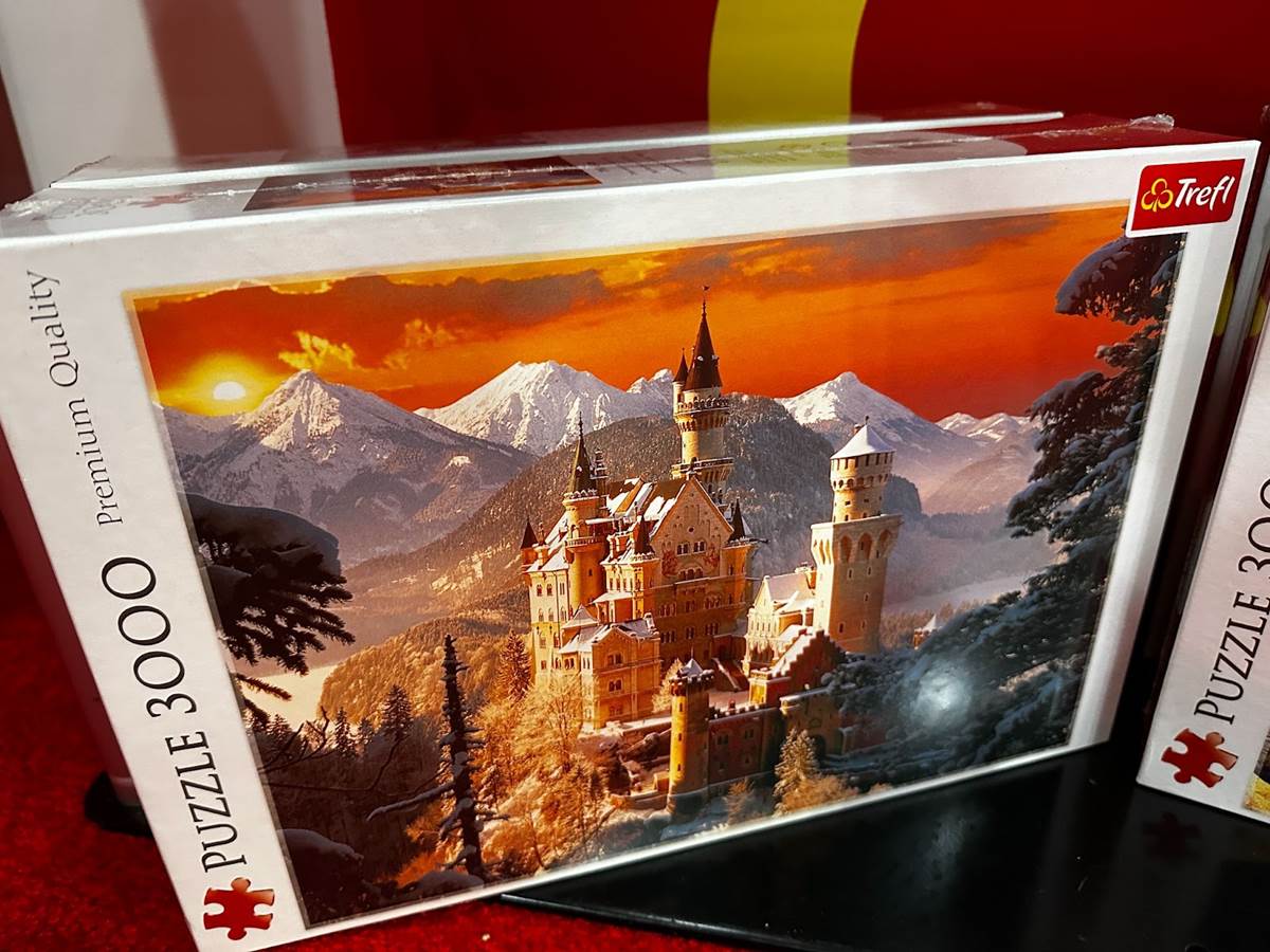 A 3,000-piece Neuschwanstein Sunset puzzle, 1,500-piece Neuschwanstein Daytime puzzle, and 500-piece Neuschwanstein Sunrise puzzle all offer ways to become more familiar with the castle that so captivated Walt Disney and his artists.