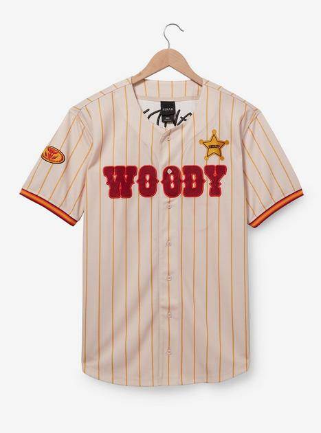 Now Toy Story’s Woody and Jessie were never an item, but they have a shared history as a cowboy and cowgirl. This Valentine's Day celebrate their friendship by snatching up a pair of baseball jerseys. Woody’s jersey has red stripes and his name in block letters on the front next to his sheriff’s star badge. Jessie’s look skips the stripes and opts for red trim, while her name is also in block letters but with a cow print. The backs have “Andy" and “Bonnie"’s names and the numbers “95" and “99" for the year they made their big screen debuts.