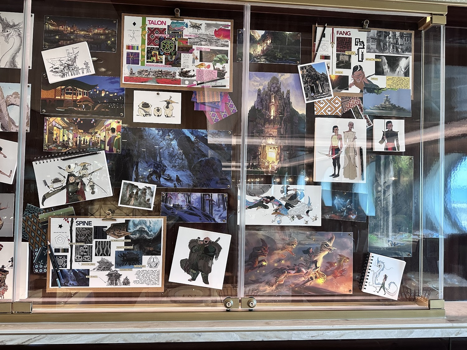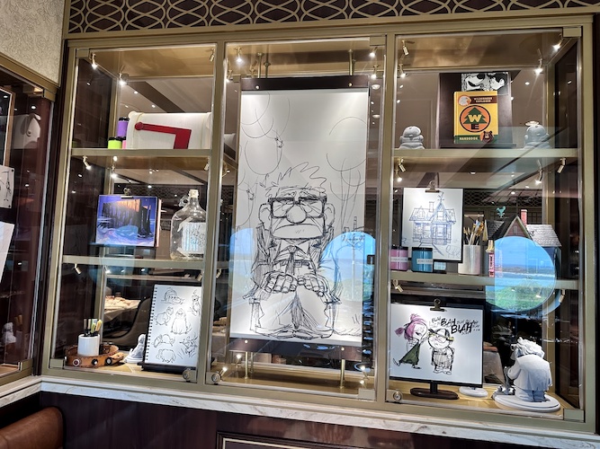 Split into two halves - named after both Roy Disney and Walt Disney, tables are surrounded by art, artifacts, and props from many films in the Walt Disney Animation Studios and Pixar Animation Studios catalog, immersing guests into classic hollywood while they dine on fresh California-style cuisine.