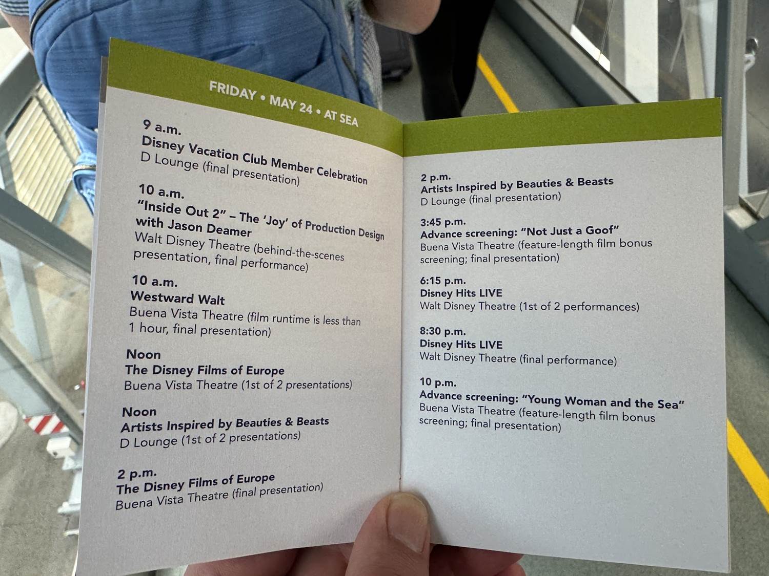 This is only day 1, but get ready for a ton of activities and events aboard the ship! Just take a look at this very special schedule for the next week aboard the beautiful Disney Dream!