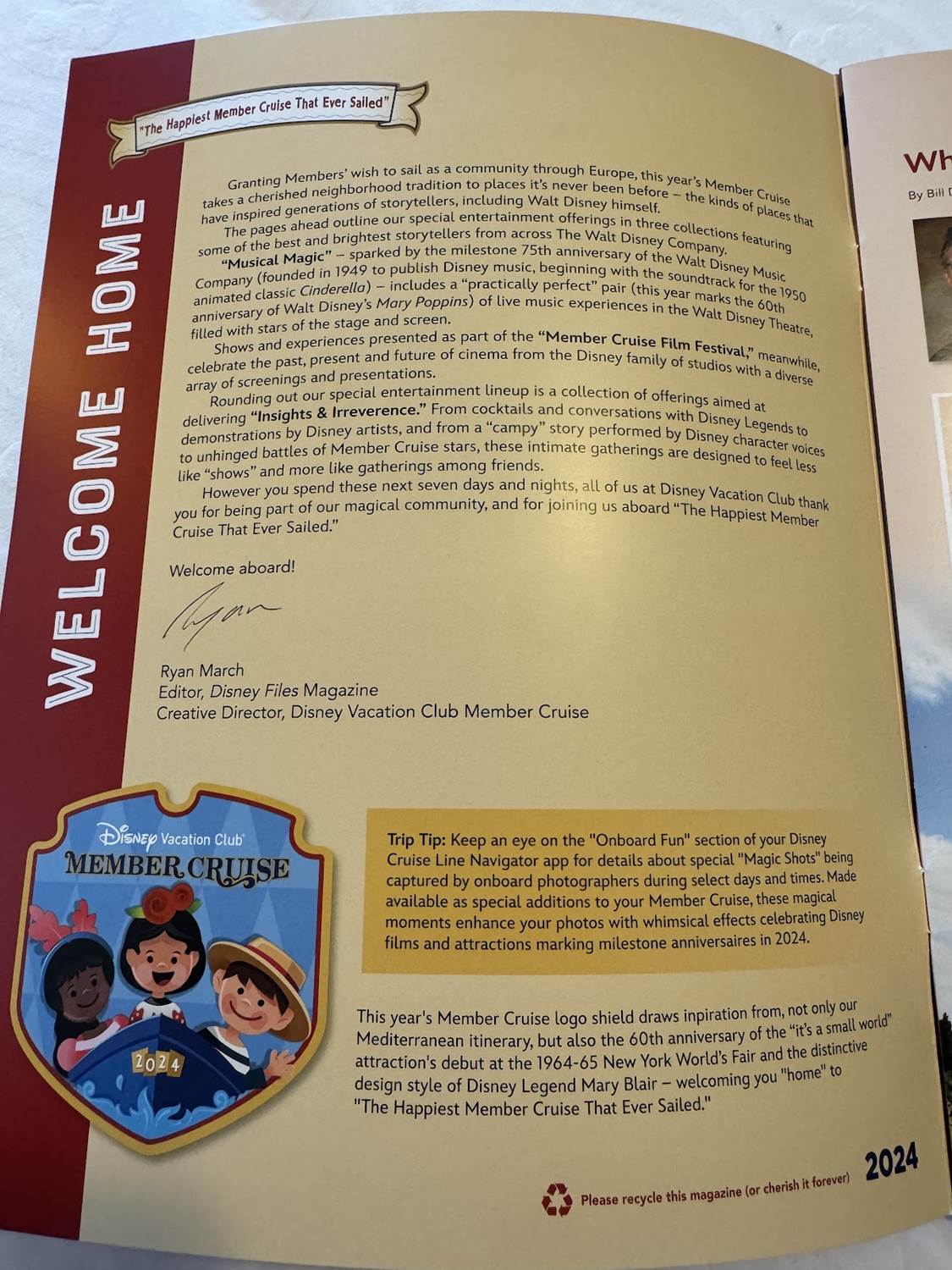 A special edition of Disney Vacation Club Insider is also available for this voyage, and shares more about some of the events and special guests aboard the ship.