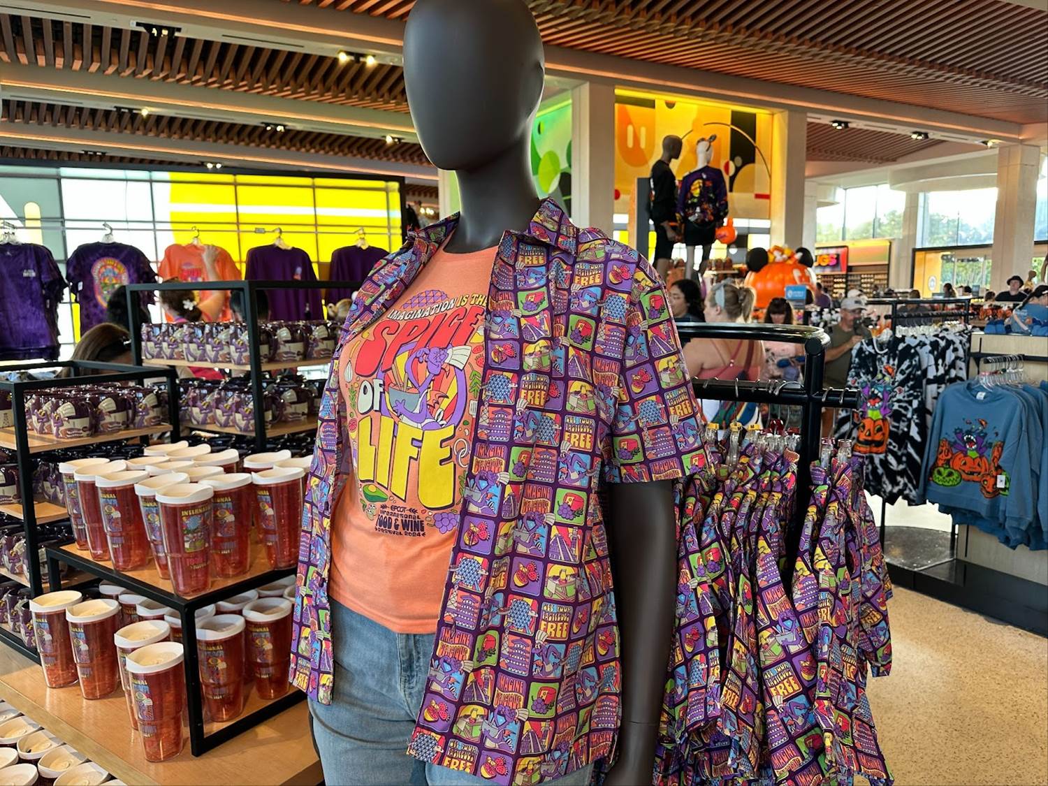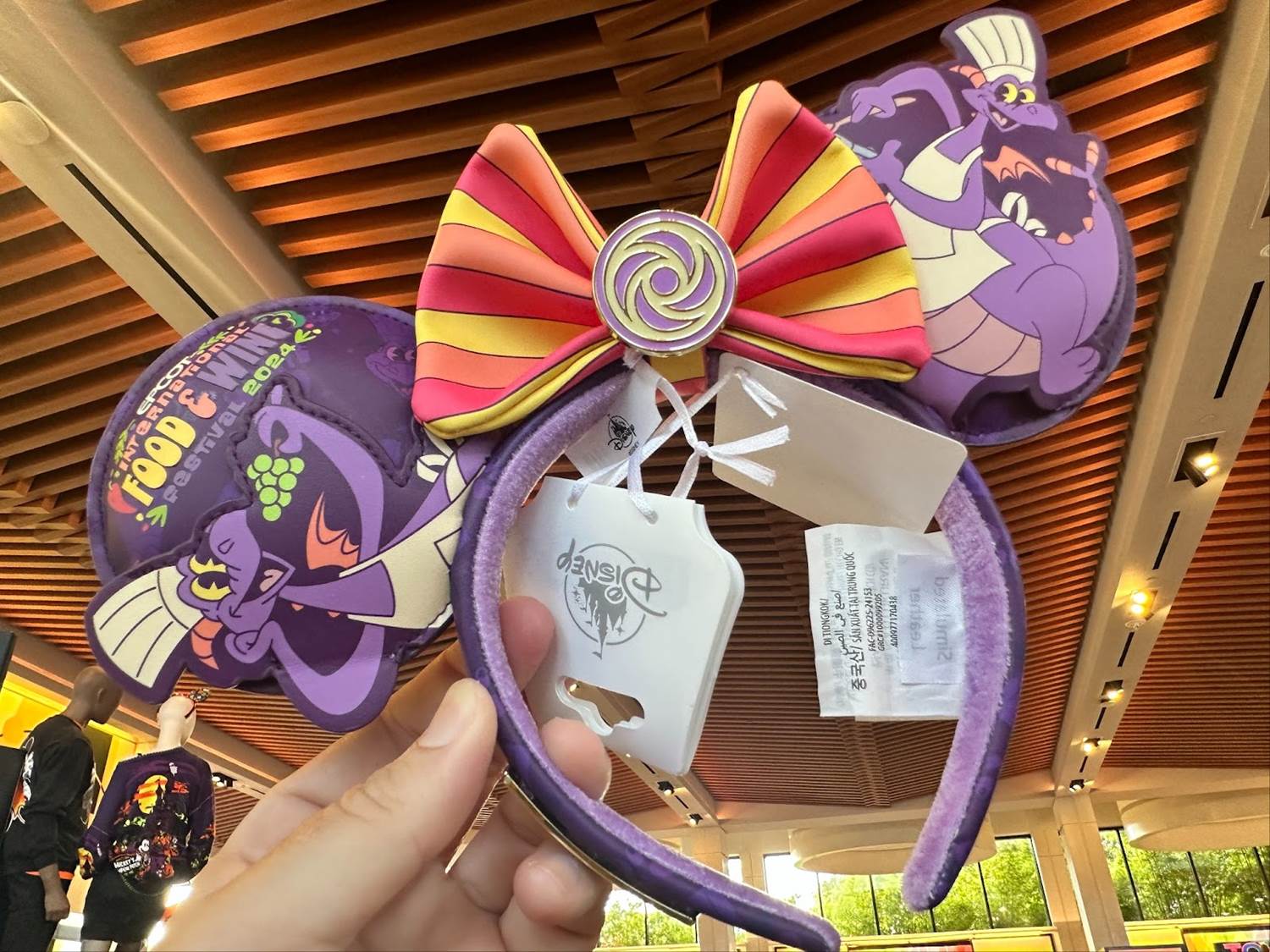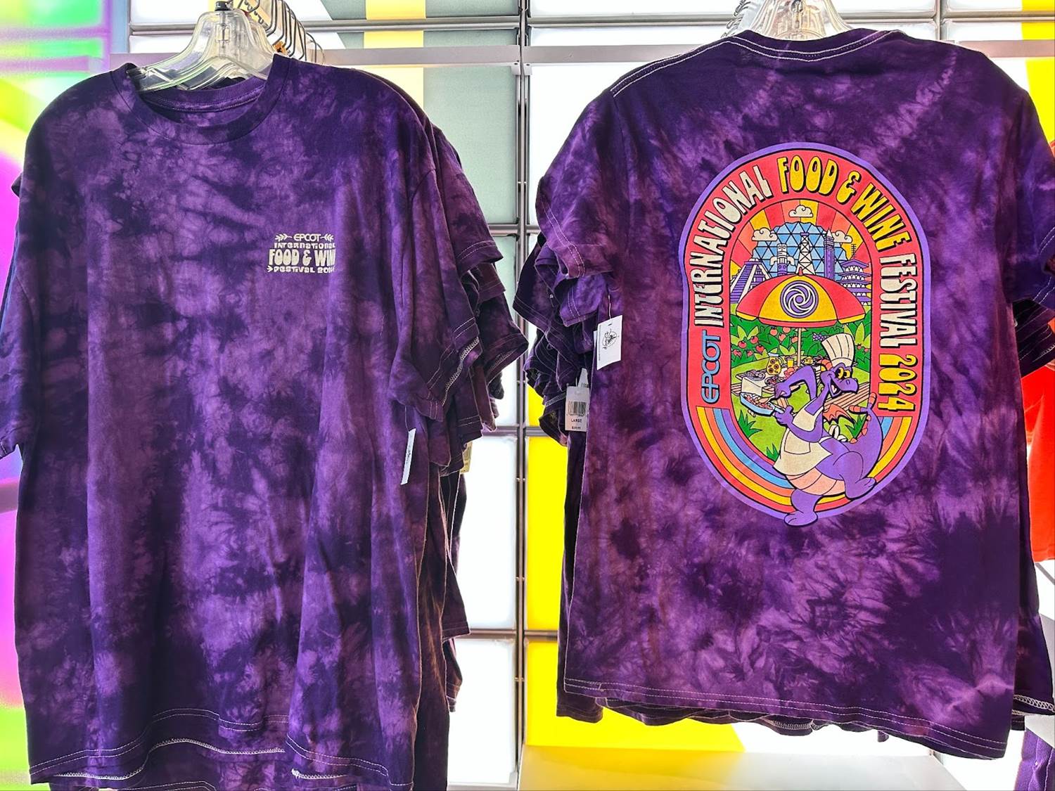 - One of this year’s most exciting Food and Wine merch lines features Imagination Pavillion’s perfect purple dragon, Figment. Including colorful 60s inspired designs, the bold set of merchandise includes a T-shirt, a button up, Minnie ears, drinkware, and a reusable shopping bag.
