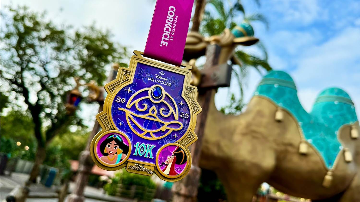 Princess Jasmine and Jafar welcome runners into a whole new world after their 6.2 mile event, just beware of his hypnotic staff. The medal itself is pictured at the top of this page.