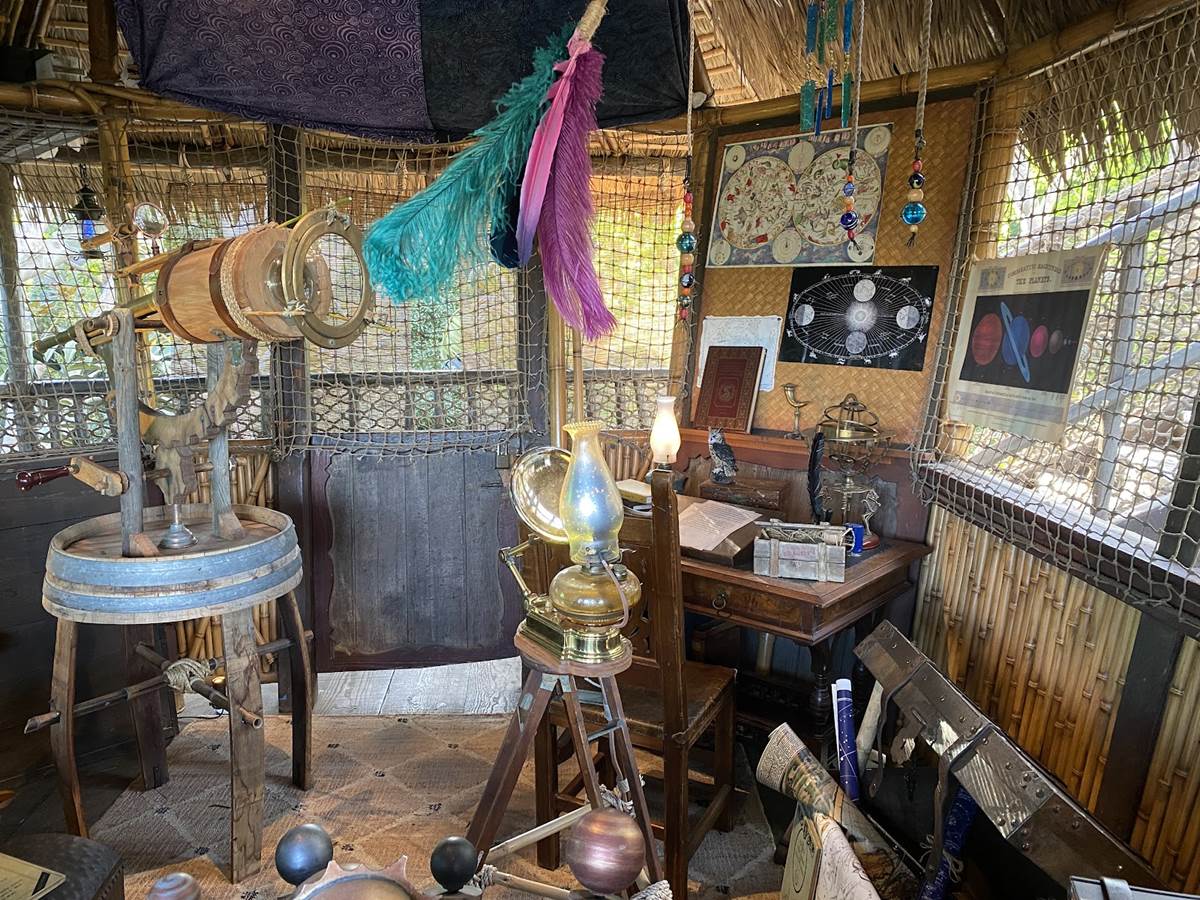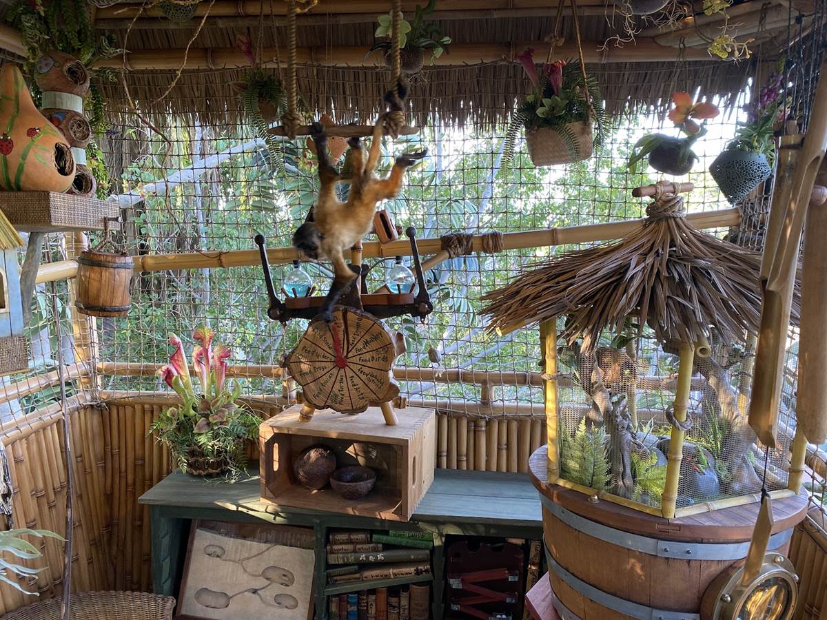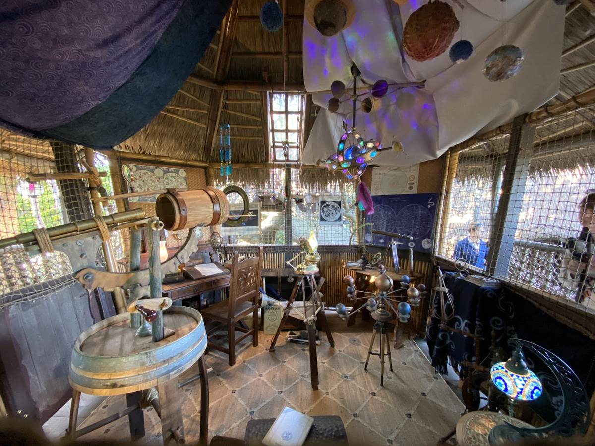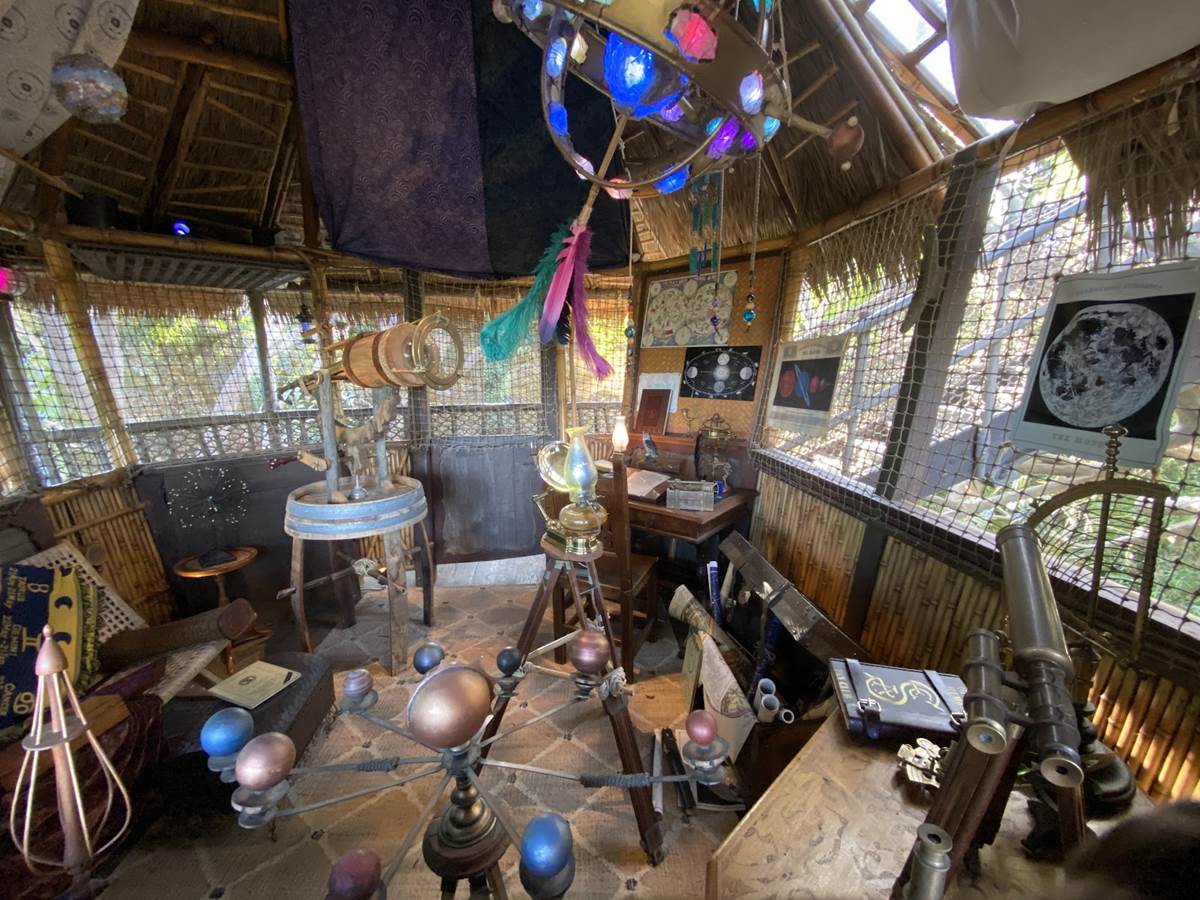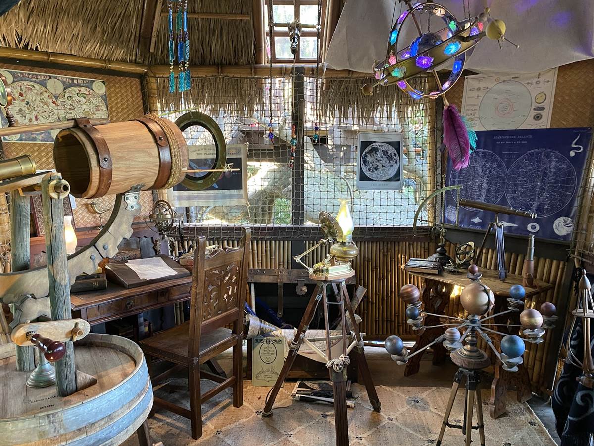 The new treehouse abandons any kind of IP tie-in, sticking only to the “inspired by" title, as you explore the treetop home of a family that itself has ties to the Disney Park lore, the Society of Explorers and Adventurers (SEA). Be sure to look for those nods throughout, especially in the daughter’s room.