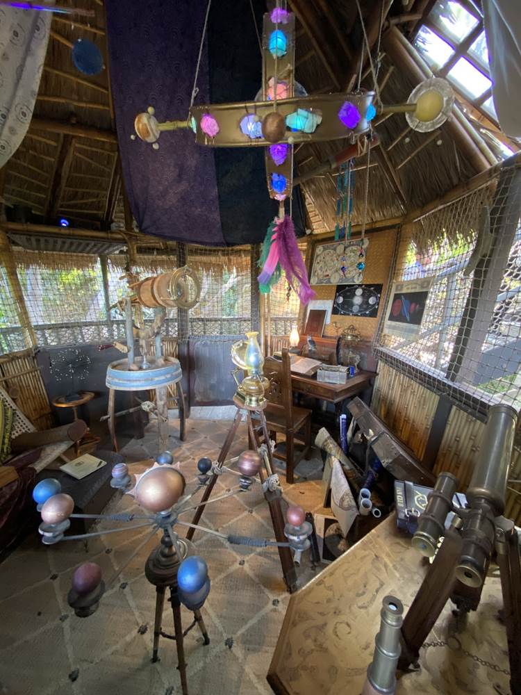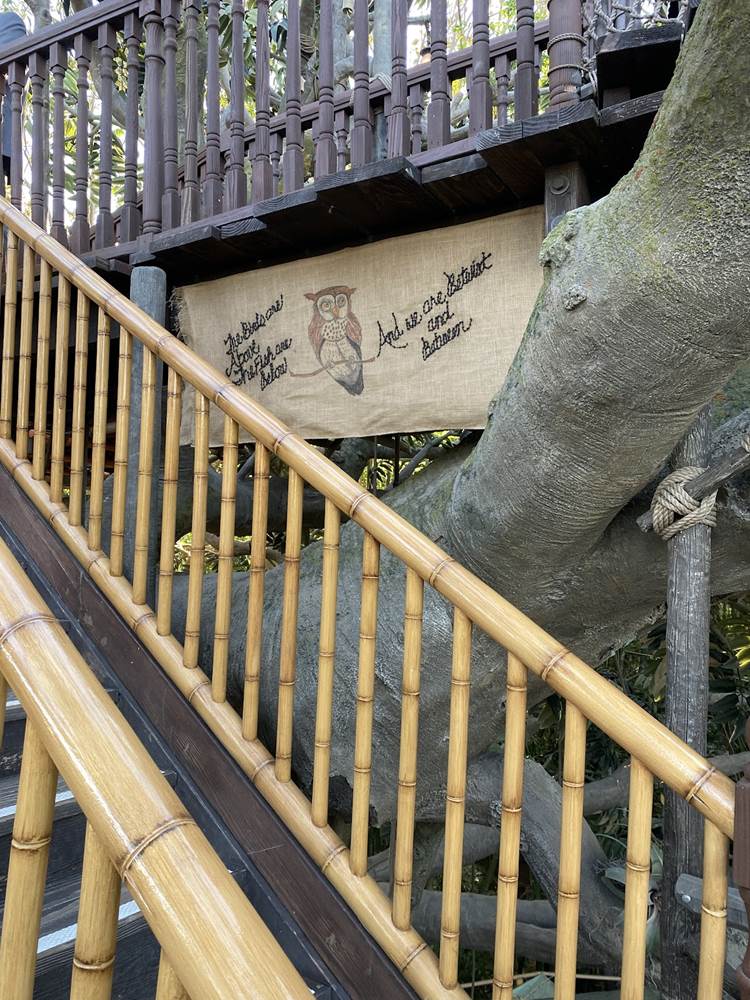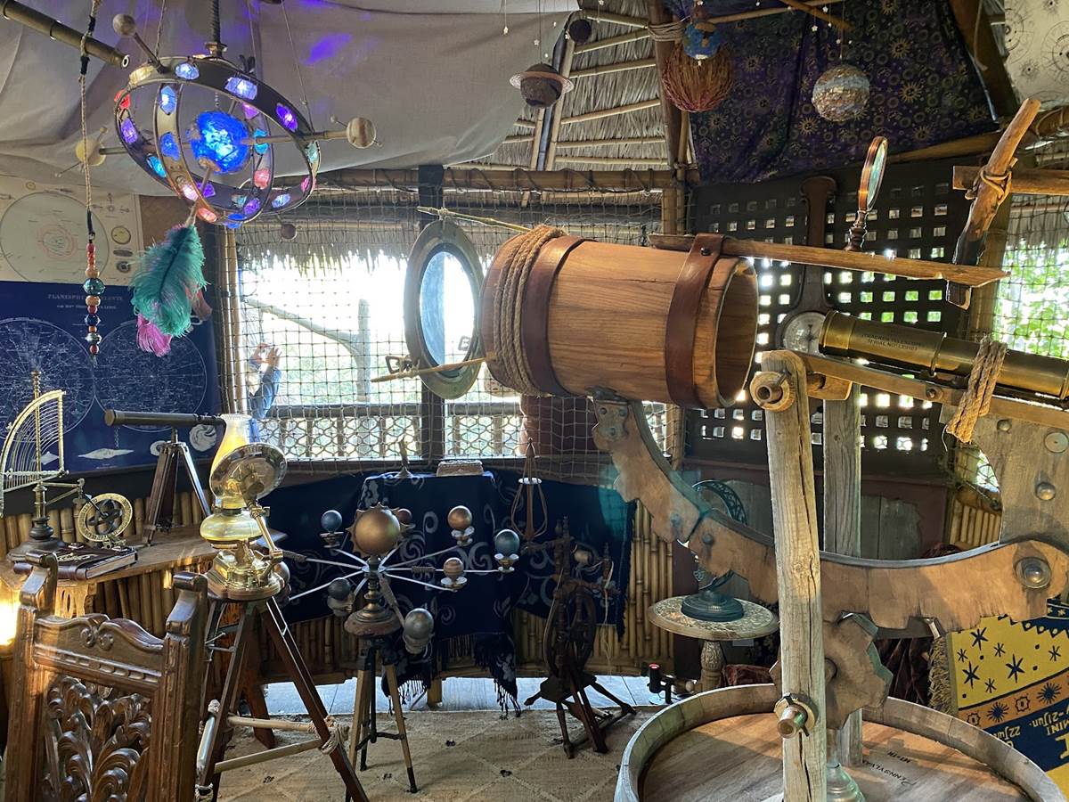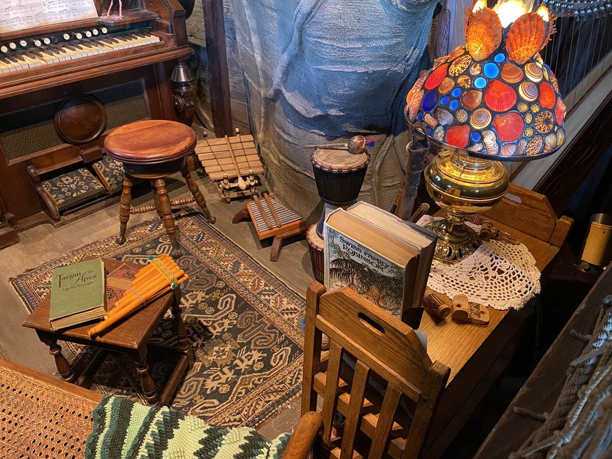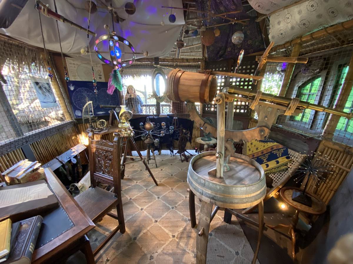 The new treehouse abandons any kind of IP tie-in, sticking only to the “inspired by" title, as you explore the treetop home of a family that itself has ties to the Disney Park lore, the Society of Explorers and Adventurers (SEA). Be sure to look for those nods throughout, especially in the daughter’s room.