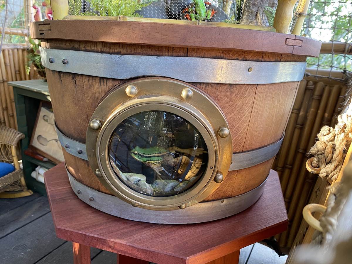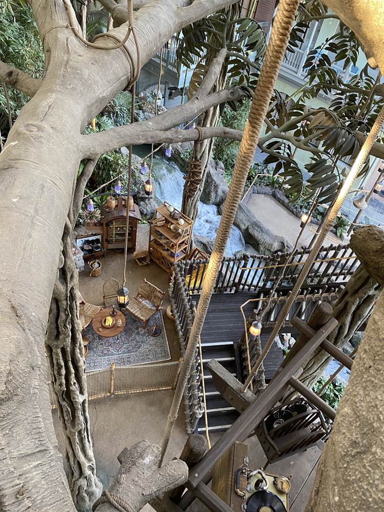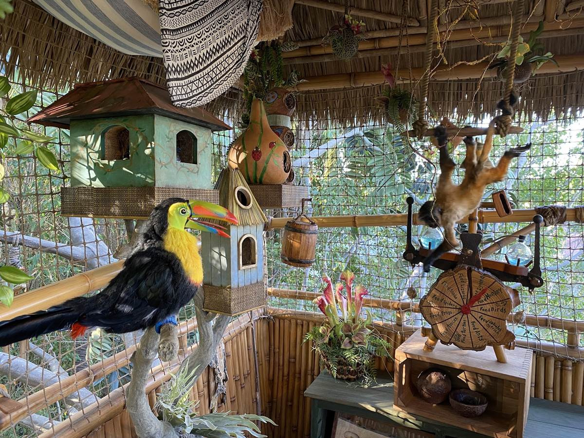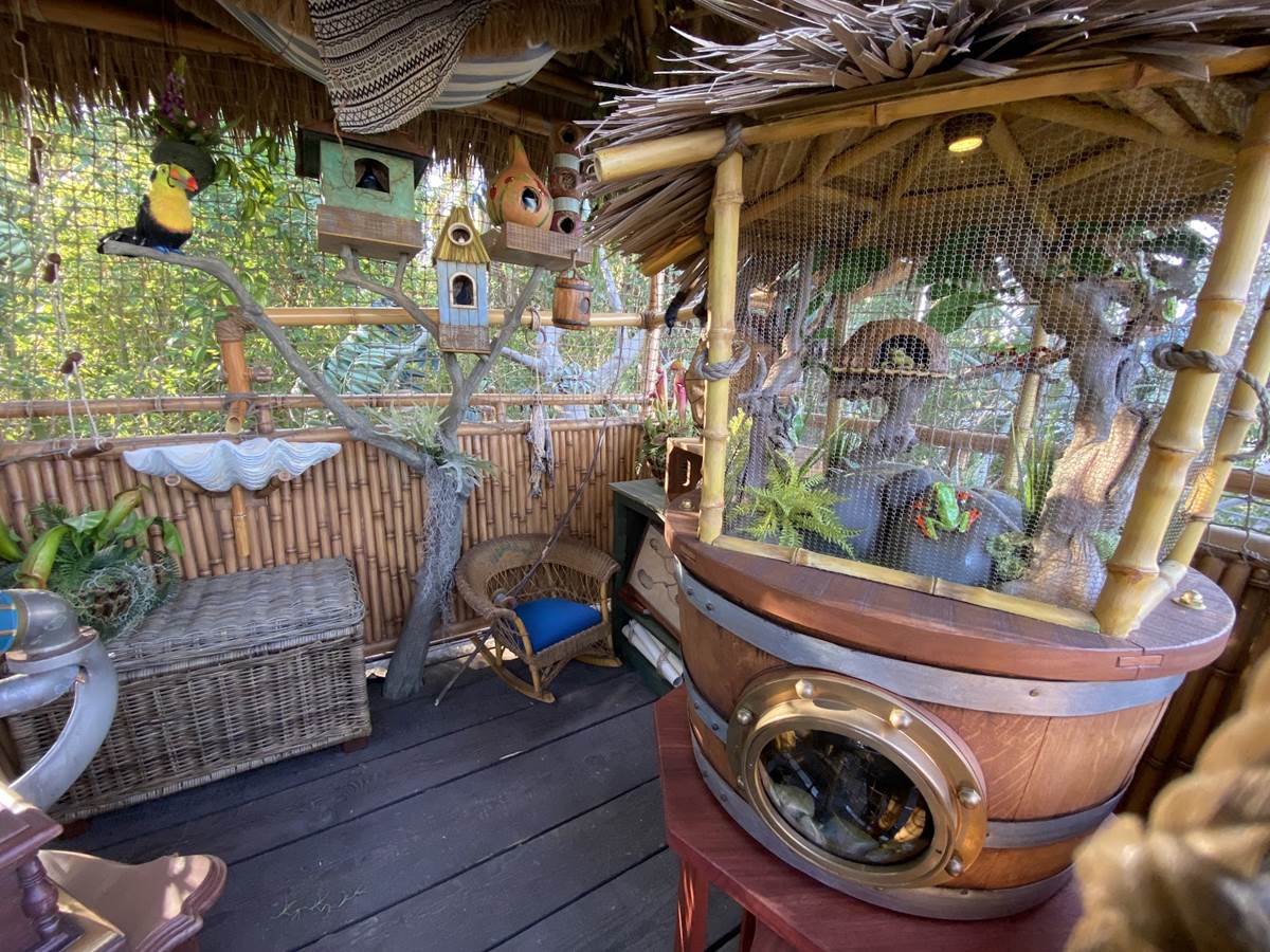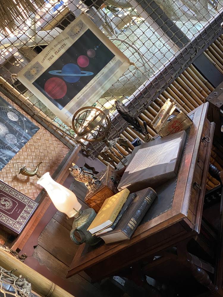 The new treehouse abandons any kind of IP tie-in, sticking only to the “inspired by" title, as you explore the treetop home of a family that itself has ties to the Disney Park lore, the Society of Explorers and Adventurers (SEA). Be sure to look for those nods throughout, especially in the daughter’s room.