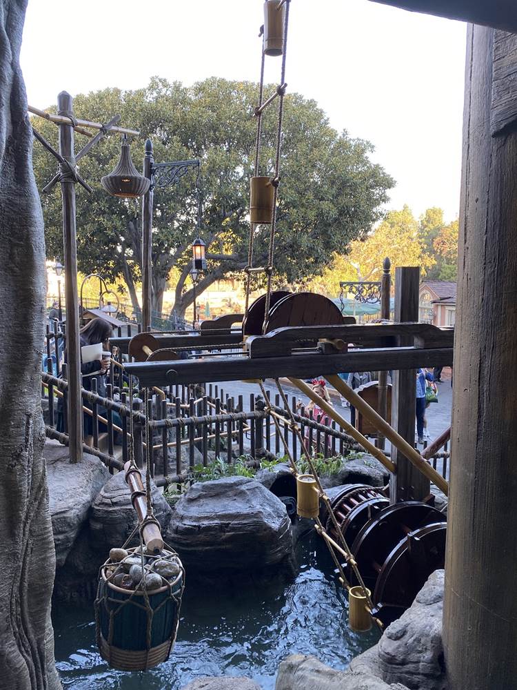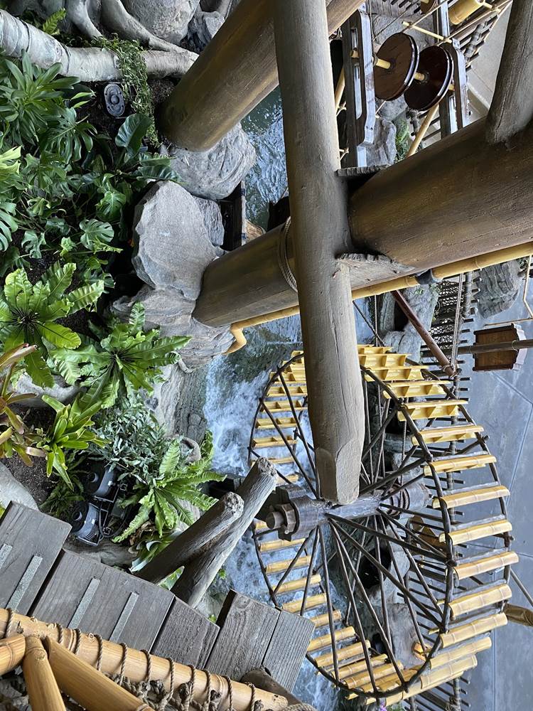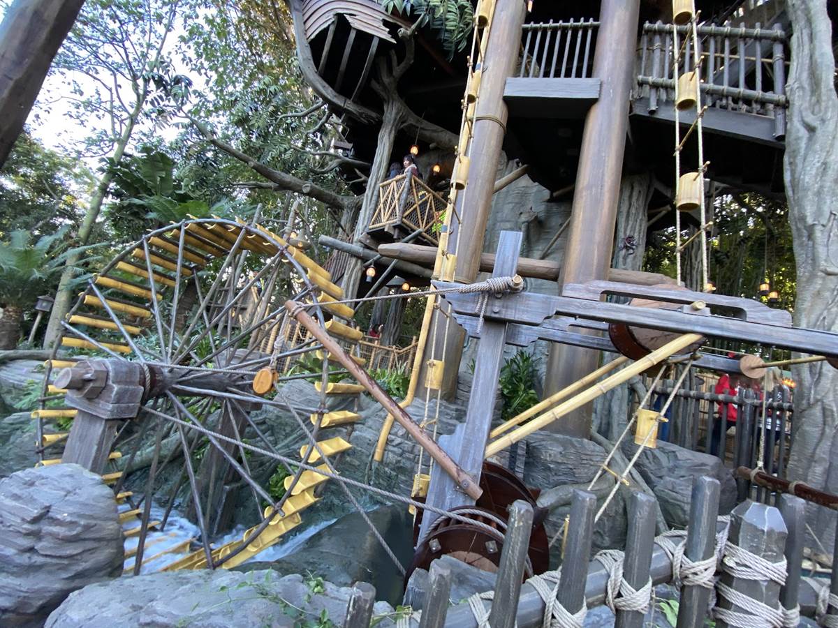 The new Adventureland Treehouse is also full of kinetic energy, with many moving parts and fun features, including Jane the Ostrich. The famous water wheel has returned and those who pay close attention to the treehouse structure can follow how the water cascades throughout the structure, powering many of the fun items throughout the treetop home.