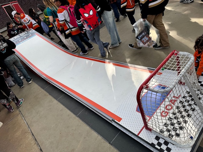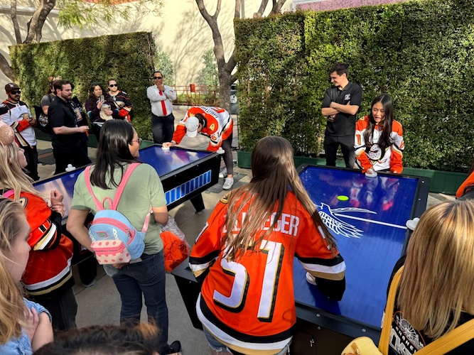 - Hockey themed activities could be found scattered throughout the Hollywood Backlot, including Anaheim Ducks-themed shuffleboard, a puck stack challenge, air hockey, and a hockey racing challenge.