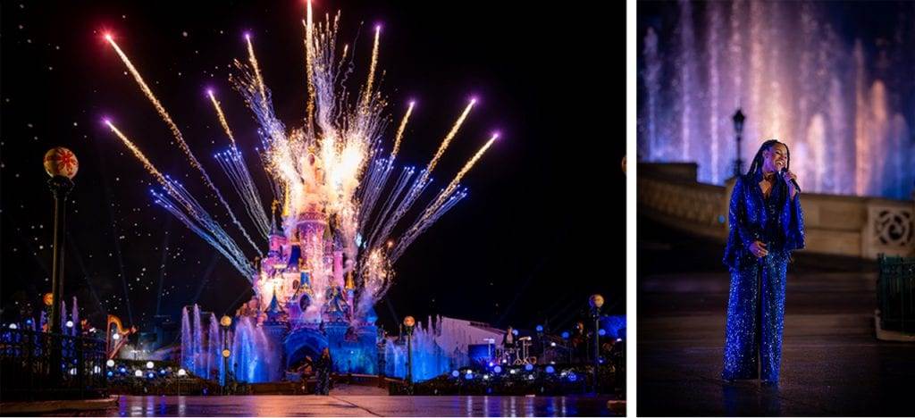 - This performance included beautiful castle projections, fountains, and Wish-themed drones that lit up the sky.