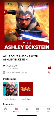 - Star Wars: The Clone Wars voice actress Ashley Eckstein (Ahsoka Tano) appeared at MegaCon Orlando this afternoon for a Q&A session on stage entitled “All About Ahsoka."