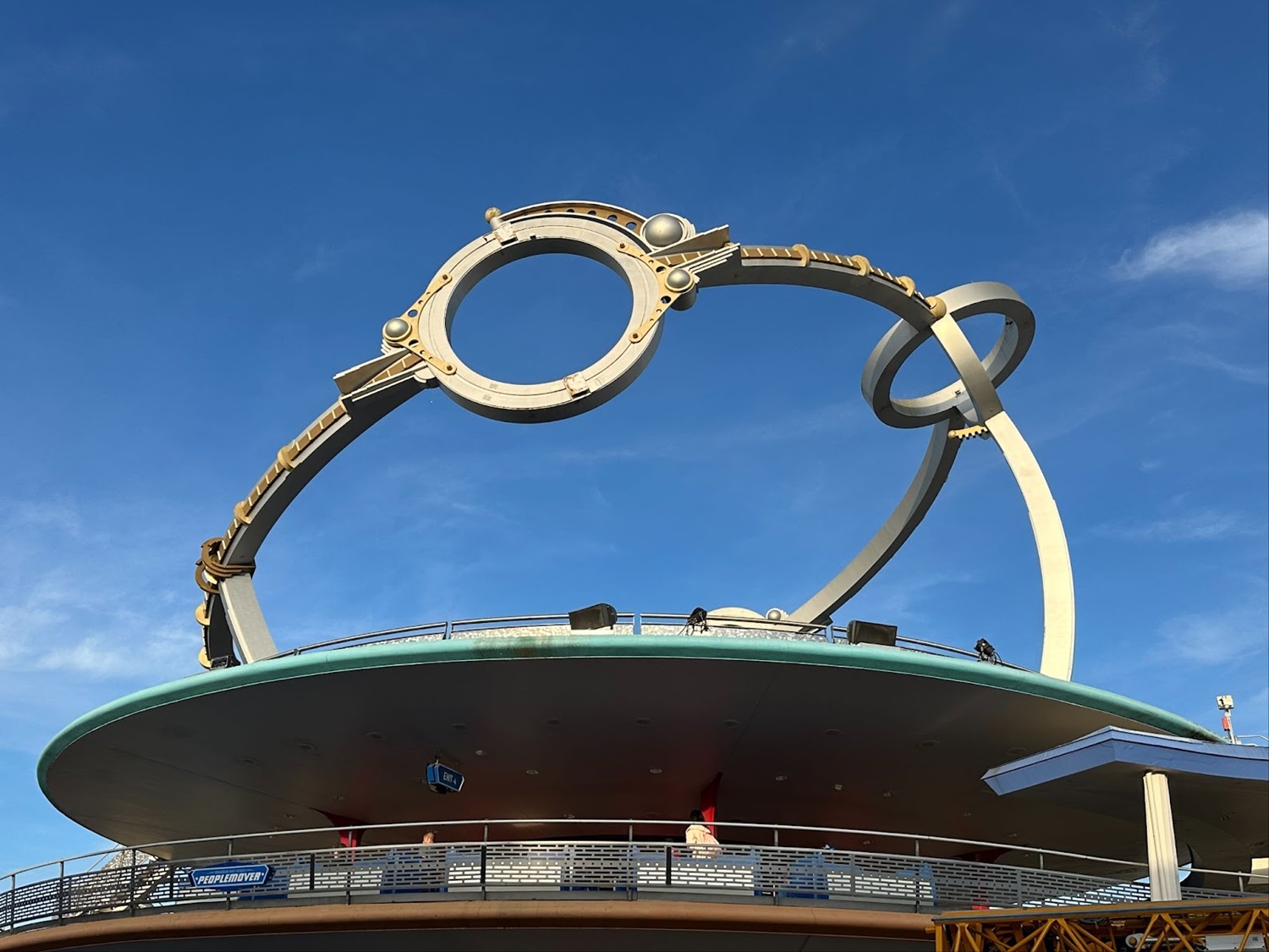 - Positioned on top of the PeopleMover, the rocket-themed flat ride is an iconic part of Tomorrowland, which normally features themed planets, lights, and provides kinetic energy throughout the land.