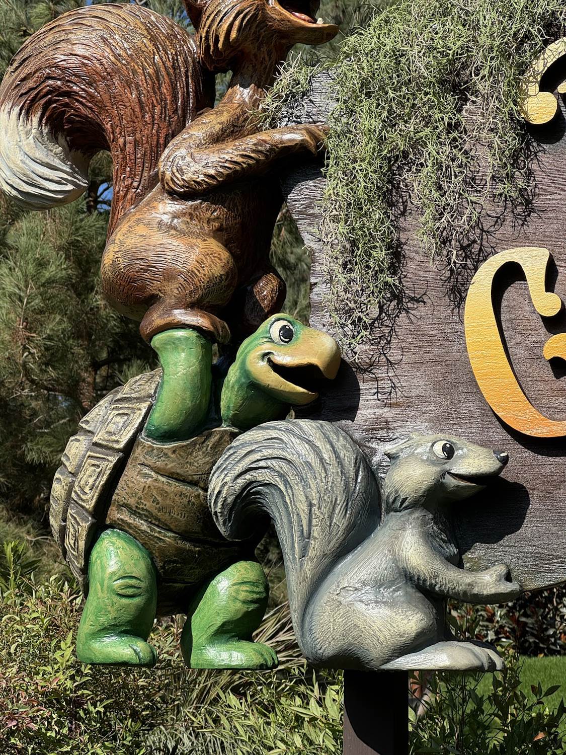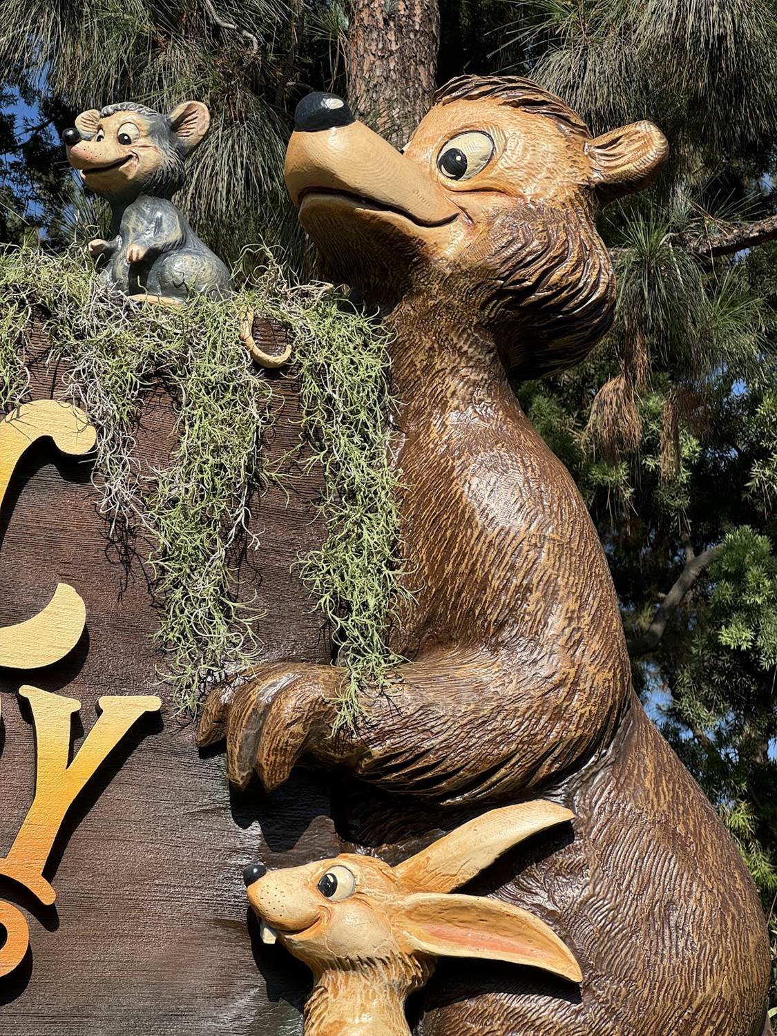 However, the signage is not too terribly different from what parkgoers were used to, aside from the (albeit ironic) addition of another critter - a bird to the top of the sign. The animals anchoring it on either side - a bear, a bunny, a squirrel, turtle, and fox, were all there on the previous sign.