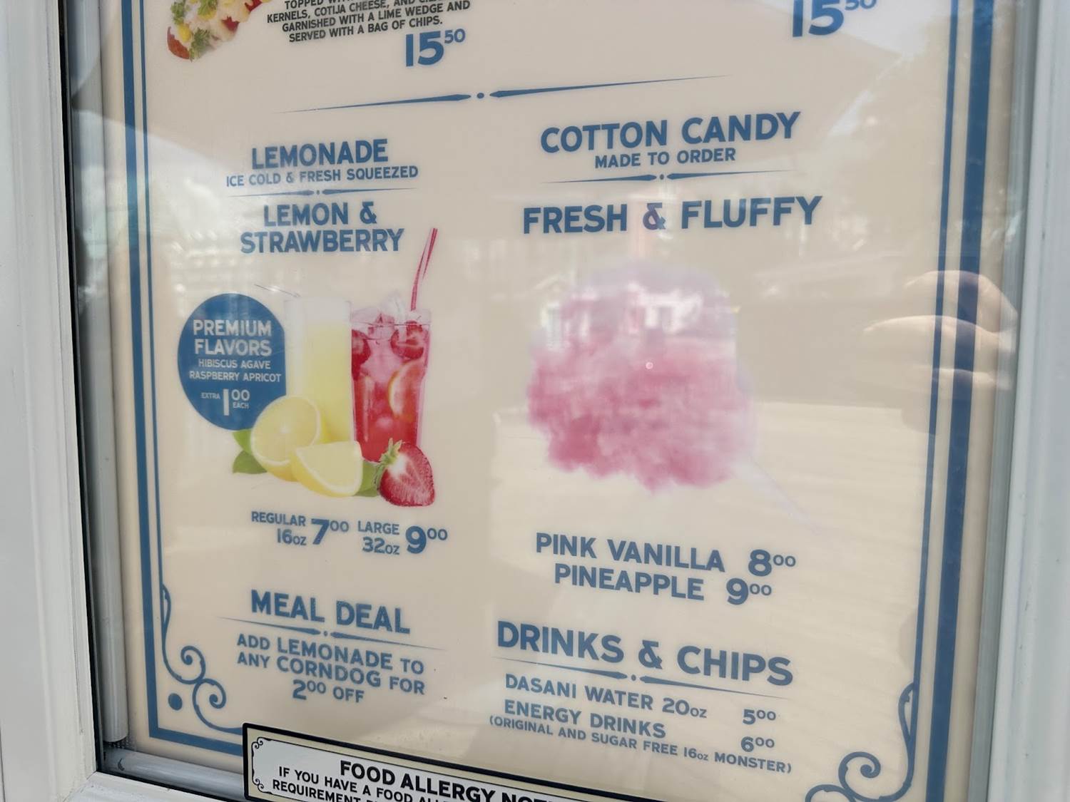 - Speciality lemonades and a flavored cotton candy is also available.