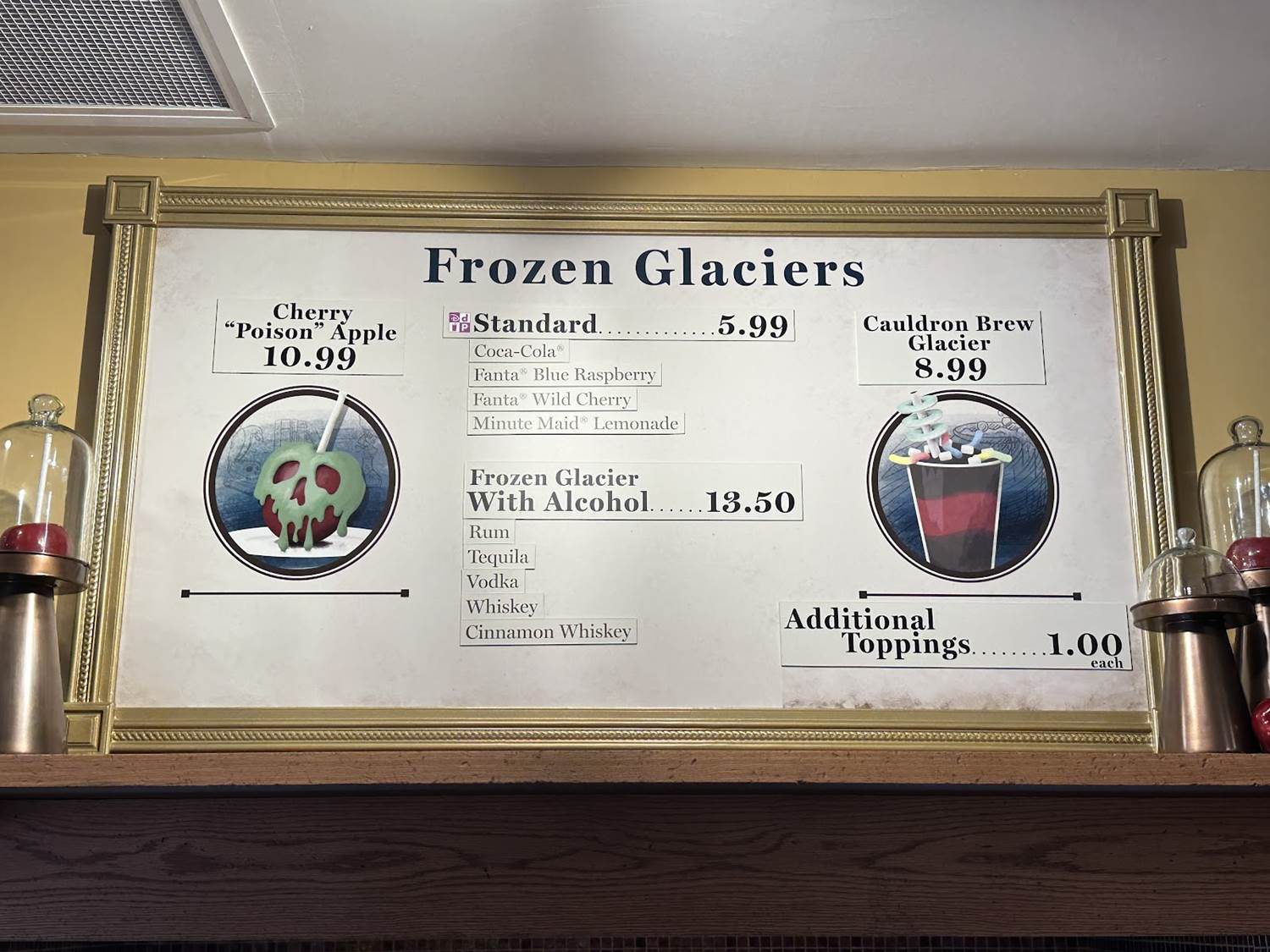 As the snack location reopened, we also saw the debut of two new exclusive sweet treats, along with improved Glaciers (frozen slush drinks) including the Cauldron Brew, along with a variety of alcohols that can be infused into the frozen drinks.