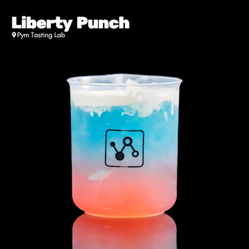 Litmus Lemonade underneath blue Hawaiian and topped with citrus meringue foam.