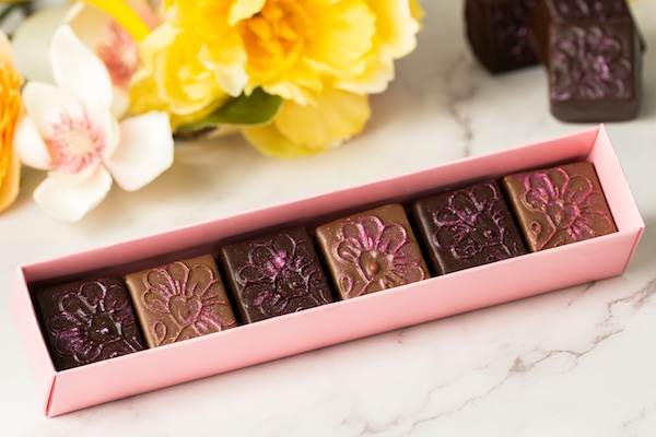 - Mother's Day Chocolate Flower Box: Ganache with flavors of hibiscus-strawberry and jasmine tea (New)