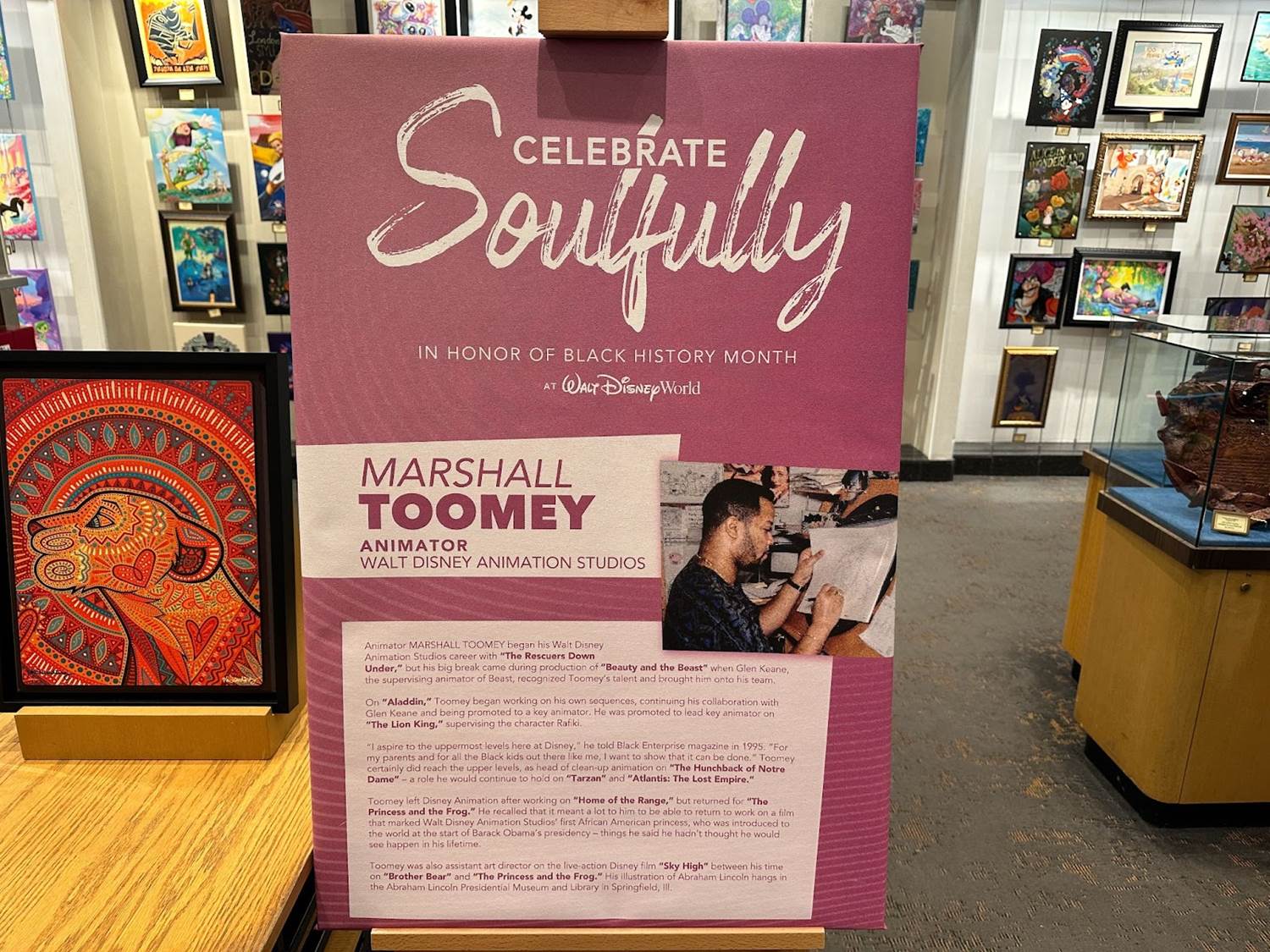 In stores like The Art of Disney and the Marketplace Co-Op, guests will find signs spotlighting the work of black artists in the world of film and animation.