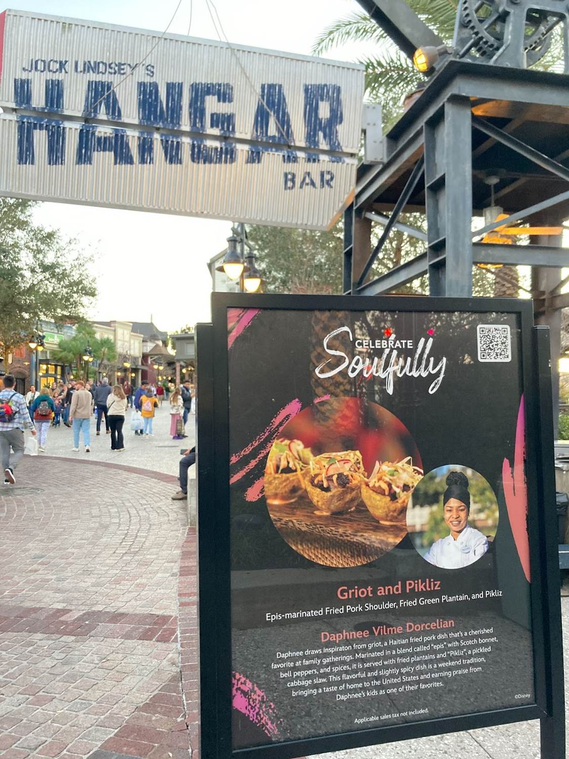And of course, there are plenty of special food options available around Disney Springs. Jock Lindsey’s Hangar Bar offers Griot and Pikliz (Epis-marinated fried pork shoulder, fried green plantain, and pikliz). And for dessert, Amorette’s Patisserie is serving up a Proud Snacks Petit Cake (Layers of chocolate chiffon, peanut butter mousse and honey-roasted peanuts) while The Ganachery is offering Cookie Butter Ganache Squares and Soulfully Pralines (Pecan pralines covered in dark 65% chocolate). Check out the full Celebrate Soulfully Foodie Guide for more offerings.